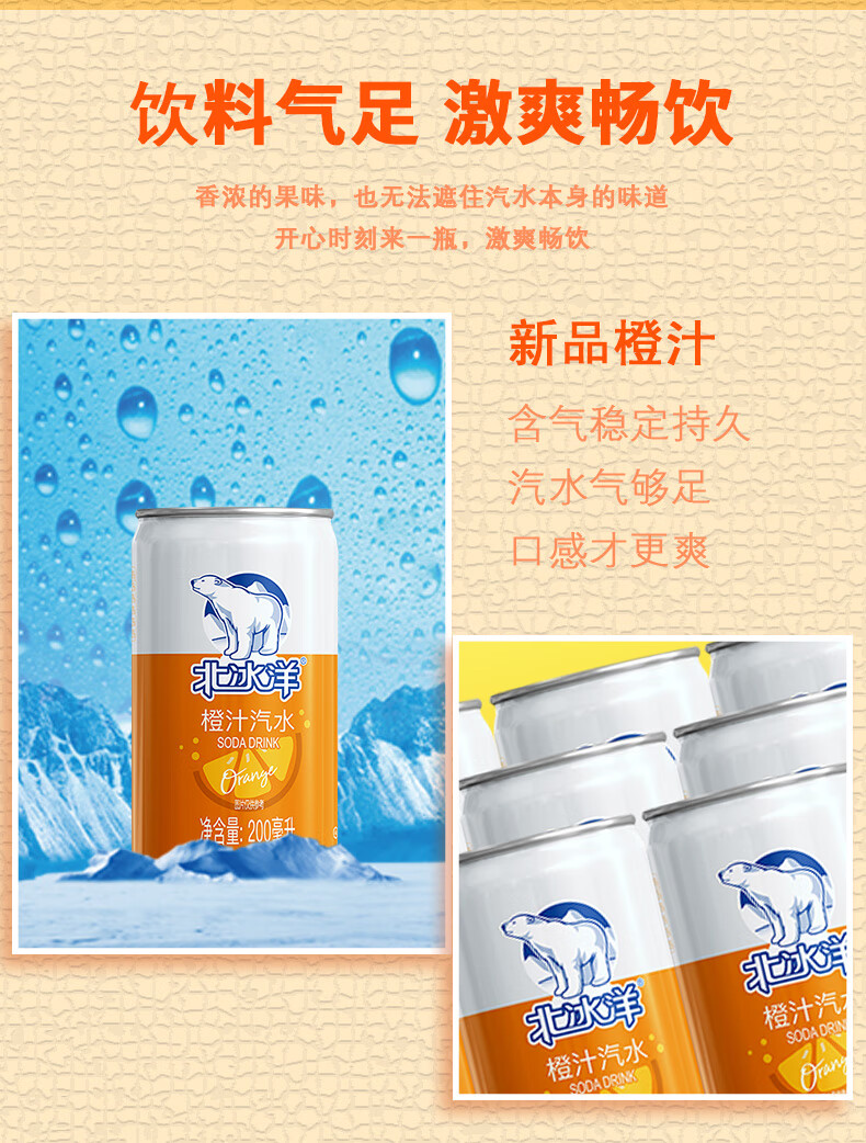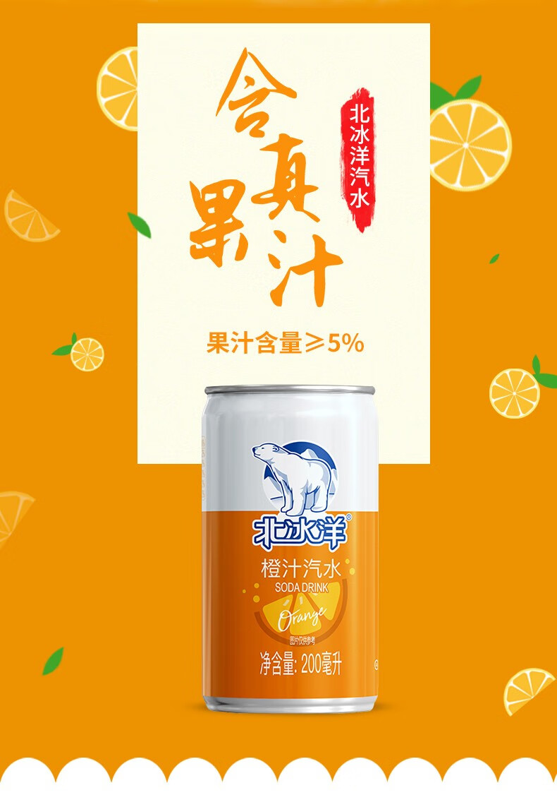 【分仓直发包邮】北冰洋MINI橙汁汽水200ml*12罐