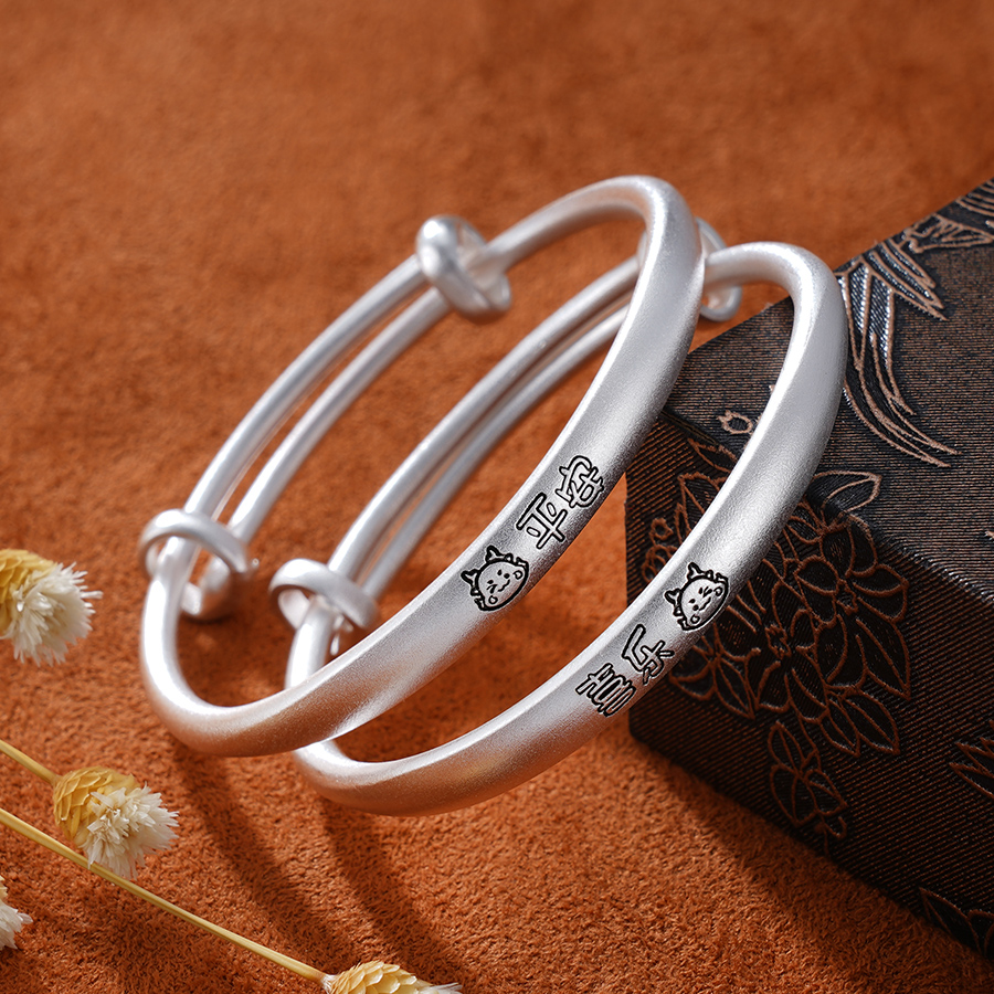 子佩集S999银【平安喜乐】童镯【ZCN773S】纯银儿童2408