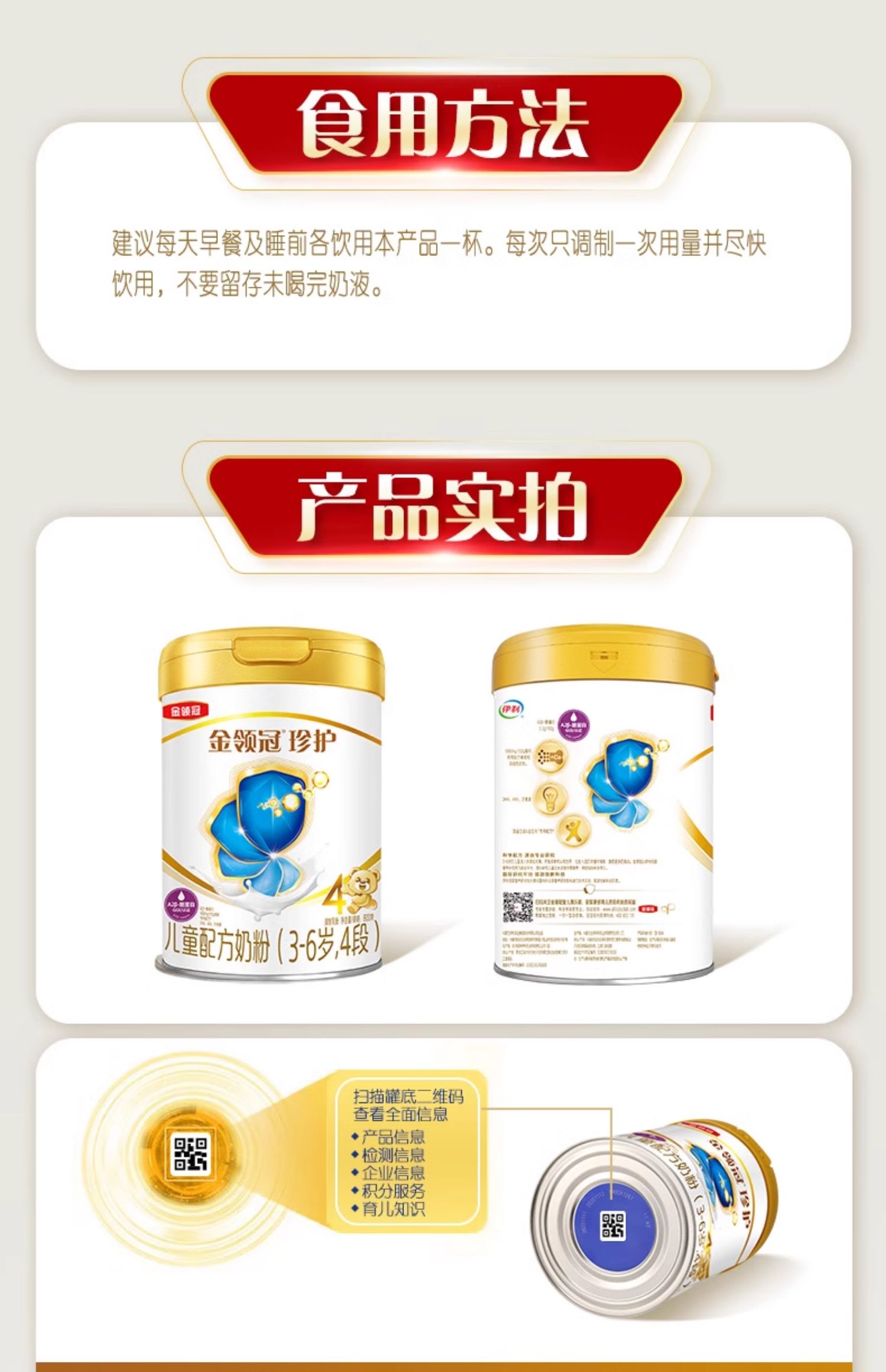 【整箱6罐】伊利金领冠珍护4段3岁上儿童成长配方a2牛奶粉800g/YIL-639864