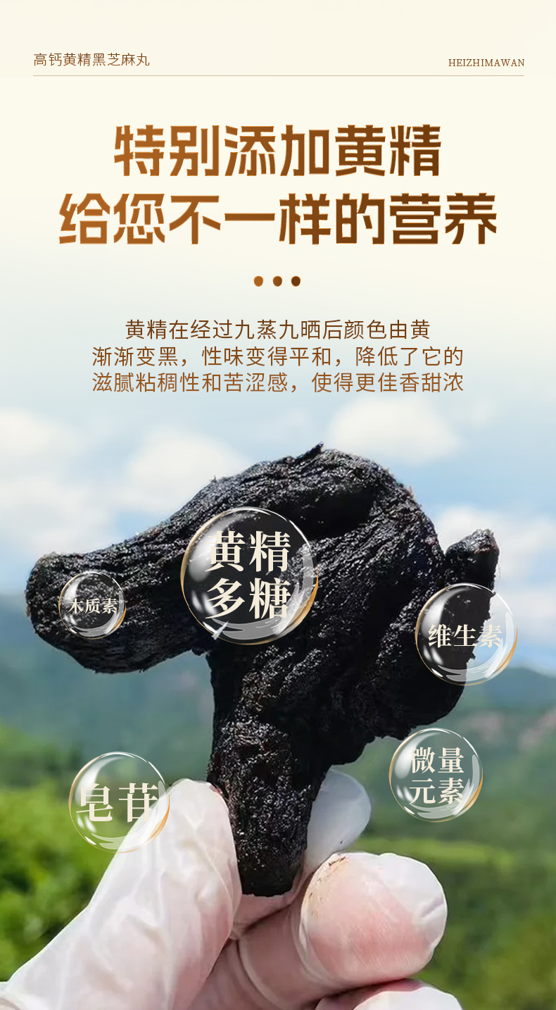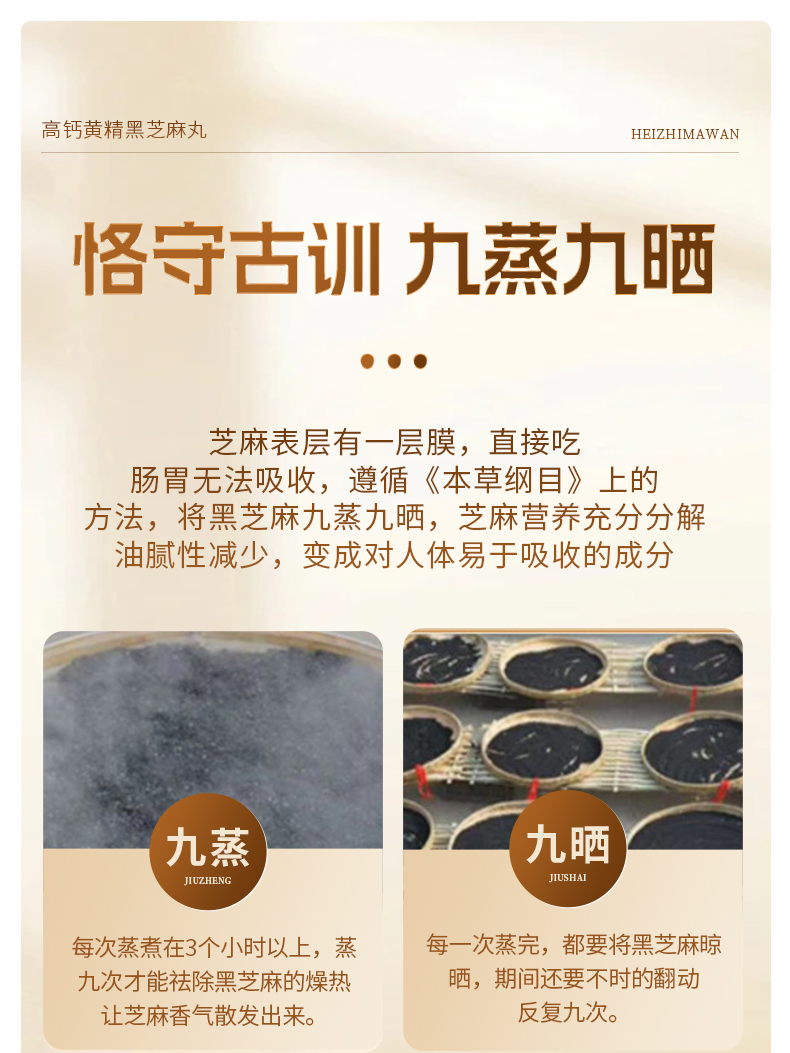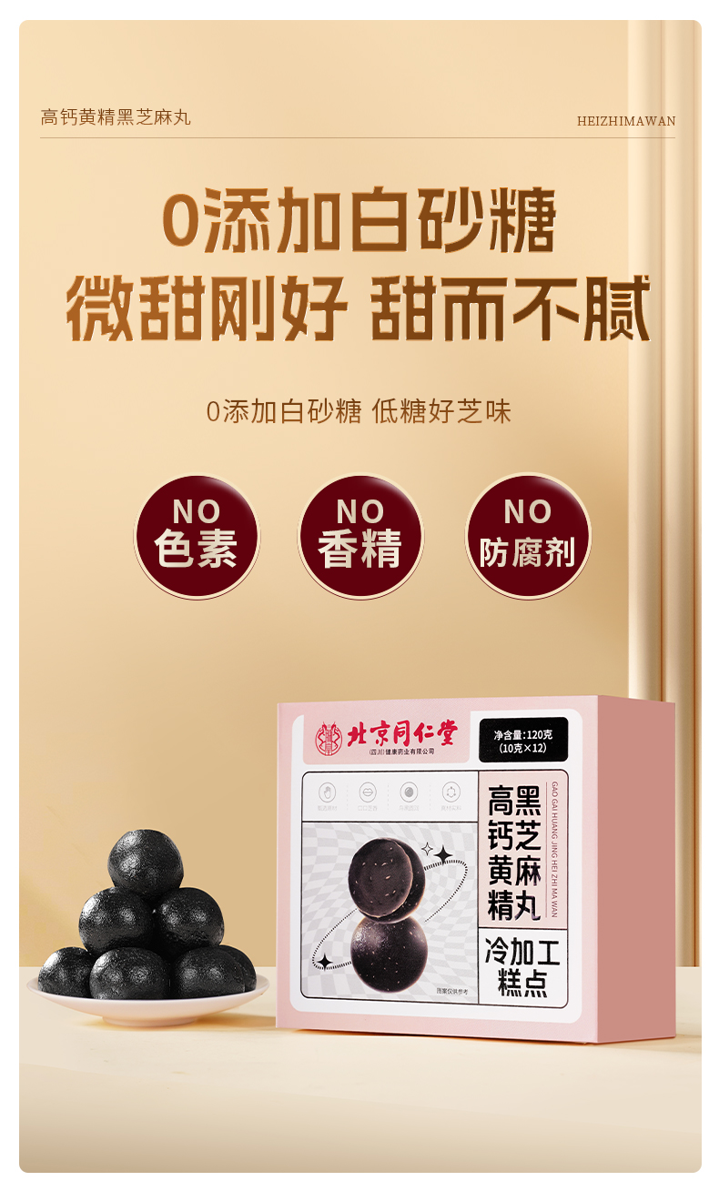 北京同仁堂 高钙黄精黑芝麻丸 九蒸九晒 地道黑芝麻 独立包装 食用方便 120g/盒