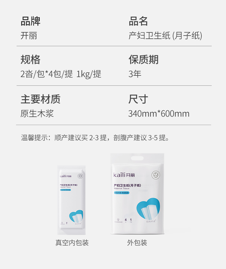 Kaili开丽2提孕产妇产后专用月子纸刀纸 (340*600mm) 1提有4小包