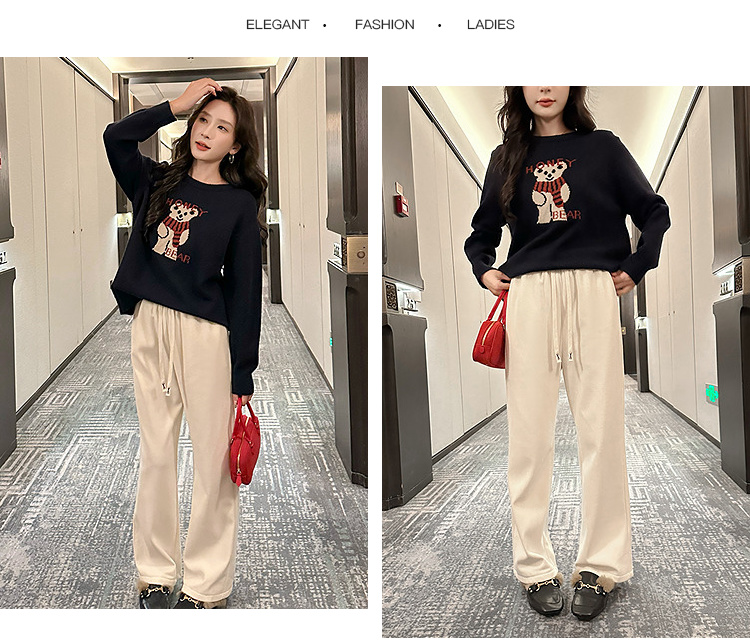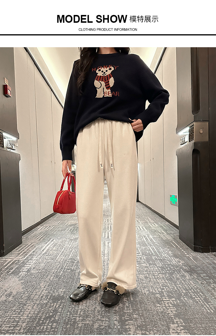 奢姿2024年冬季新款大码女装松紧腰直筒裤子胖妹妹系绳加绒休闲裤9944590304