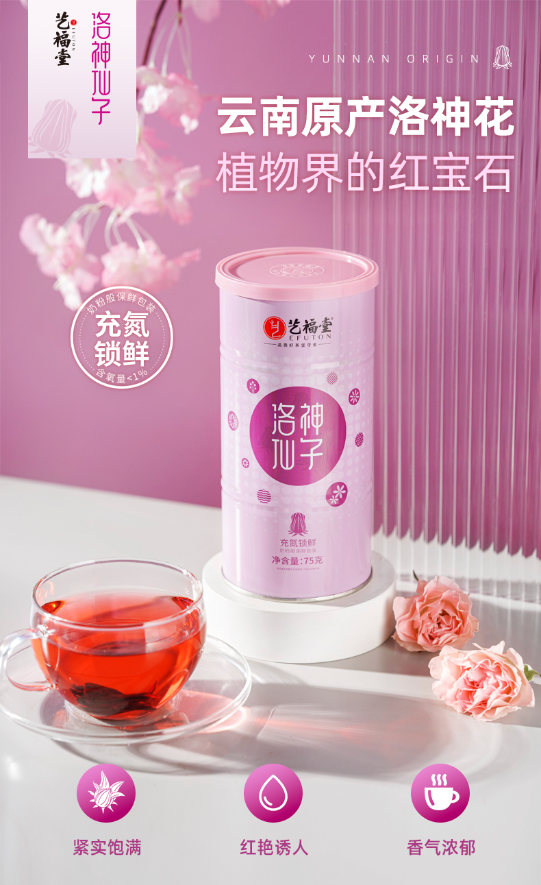 【优选】艺福堂 洛神仙子 玫瑰茄 植物界红宝石 75g*2罐