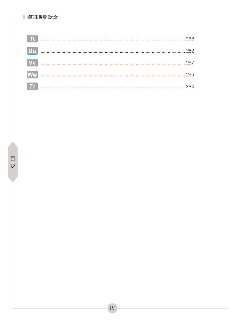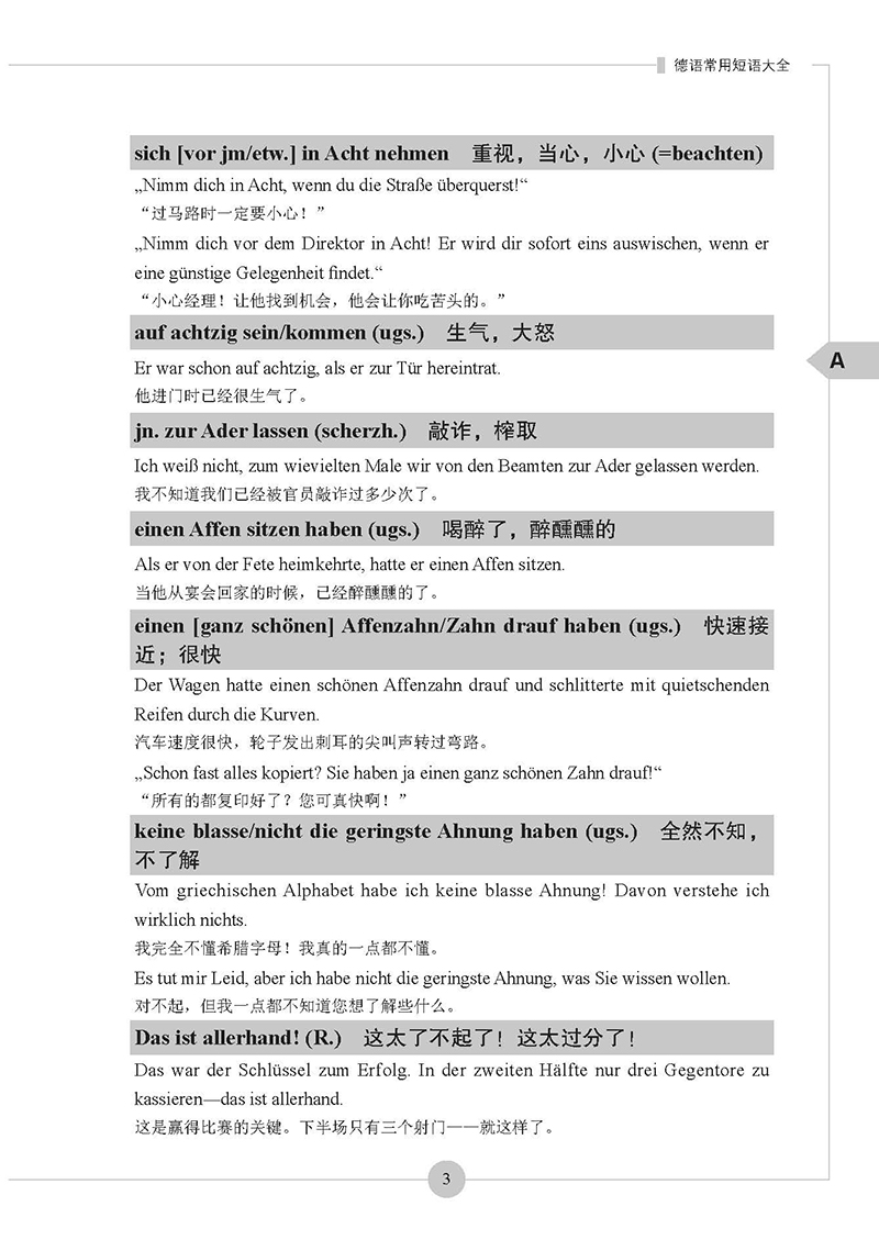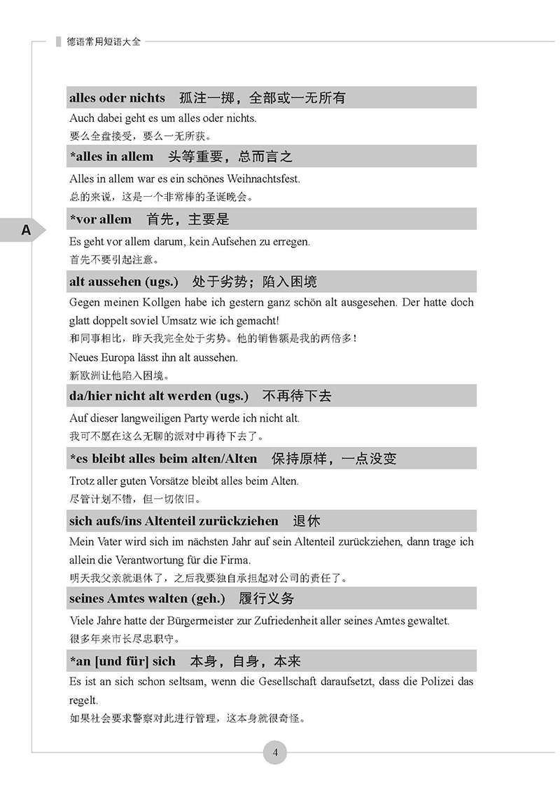 《德语常用短语大全》不是要讲述德语词组和短语高深的语法,也不是对其进行深入细致的研究,而是从学习、记忆和运用的目的出发,让学习者能准确记忆每一个词组和短语,能熟练运用每一词组和短语,这是编写本书的初衷。本书精选日常生活中常见的词组,剔除了那些比较生僻的词组和短语,在程度上轻了学习者的负担,而且更具有性和针对性