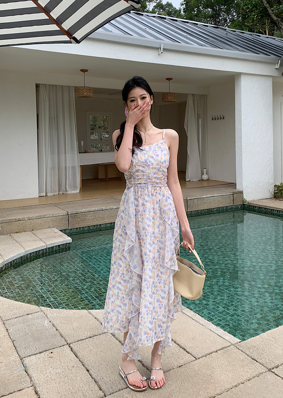 P&X设计师女装 连衣长裙碎花甜美套装长裙 824114825 花色