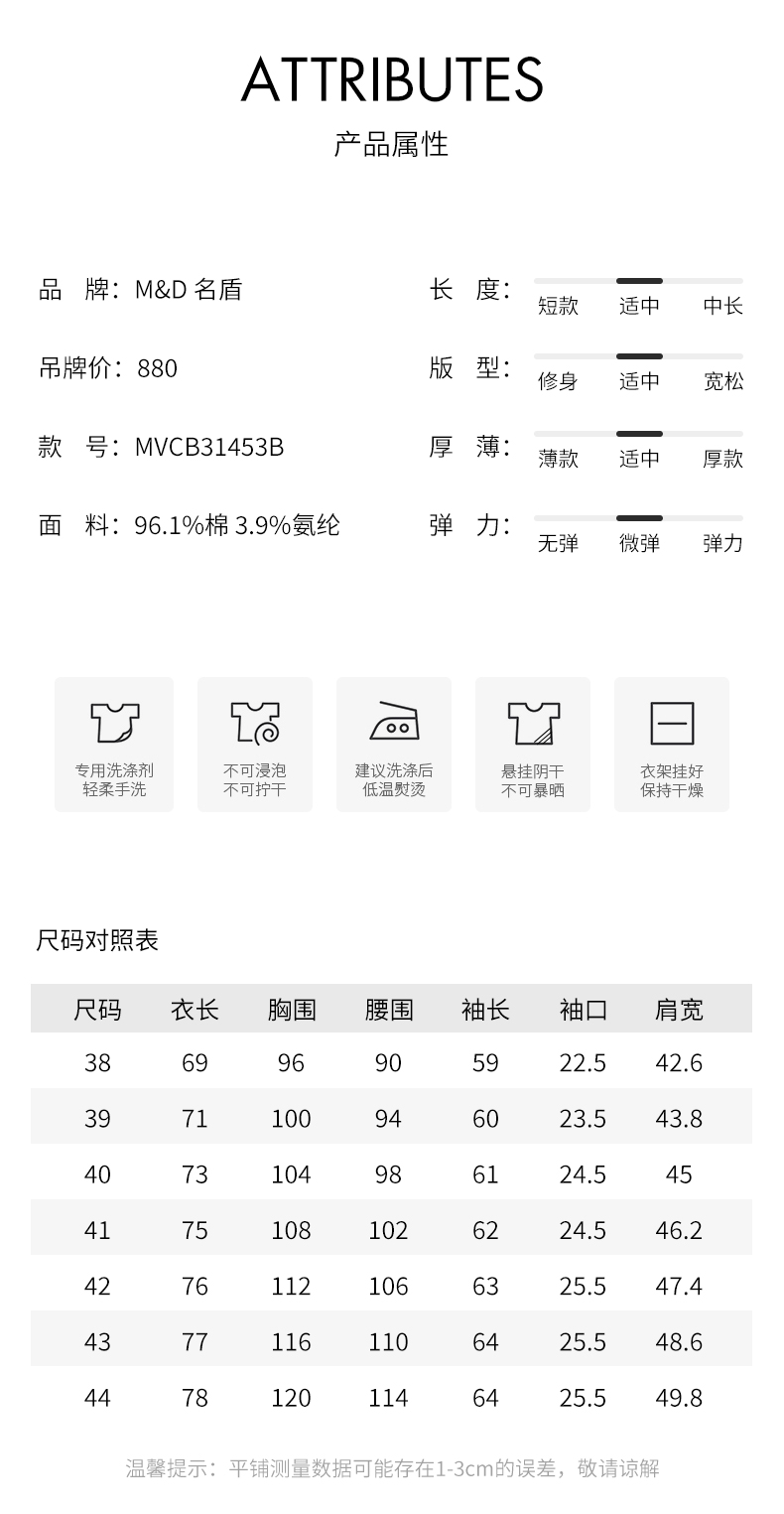 | 品牌: M&D/名盾 | 领型: 尖领(常规) |