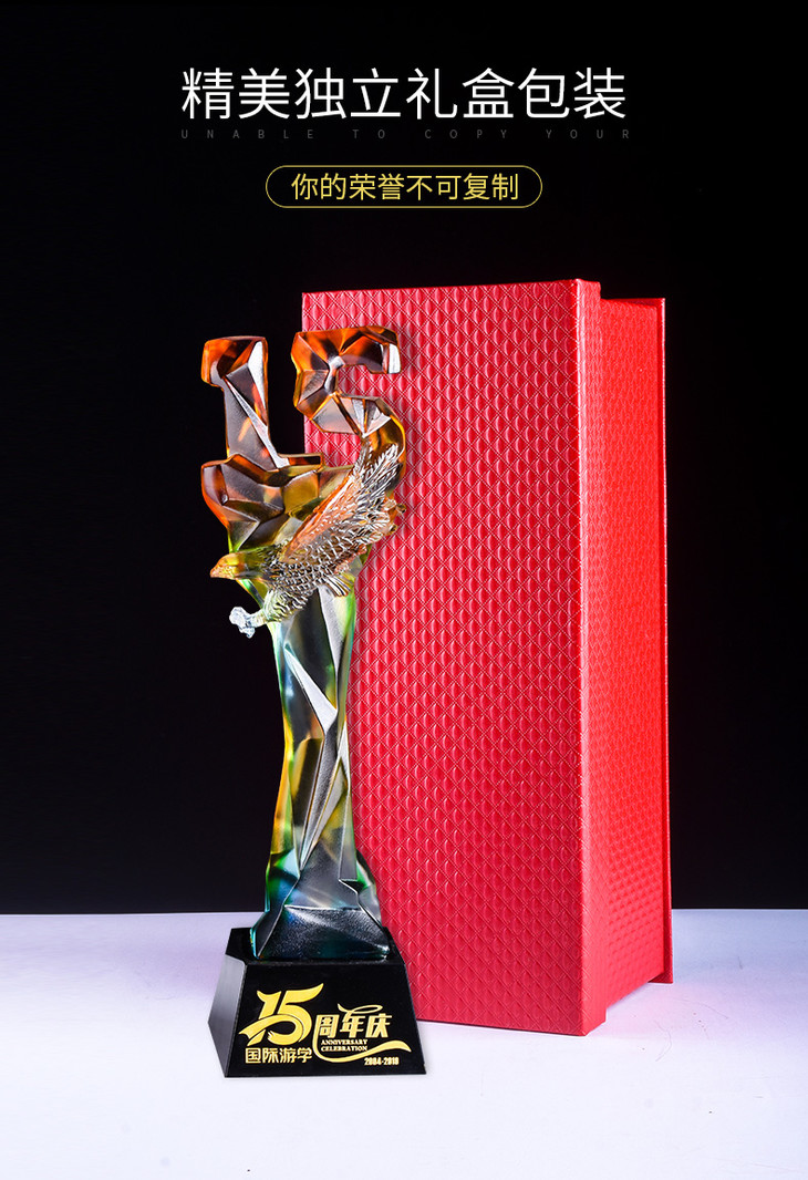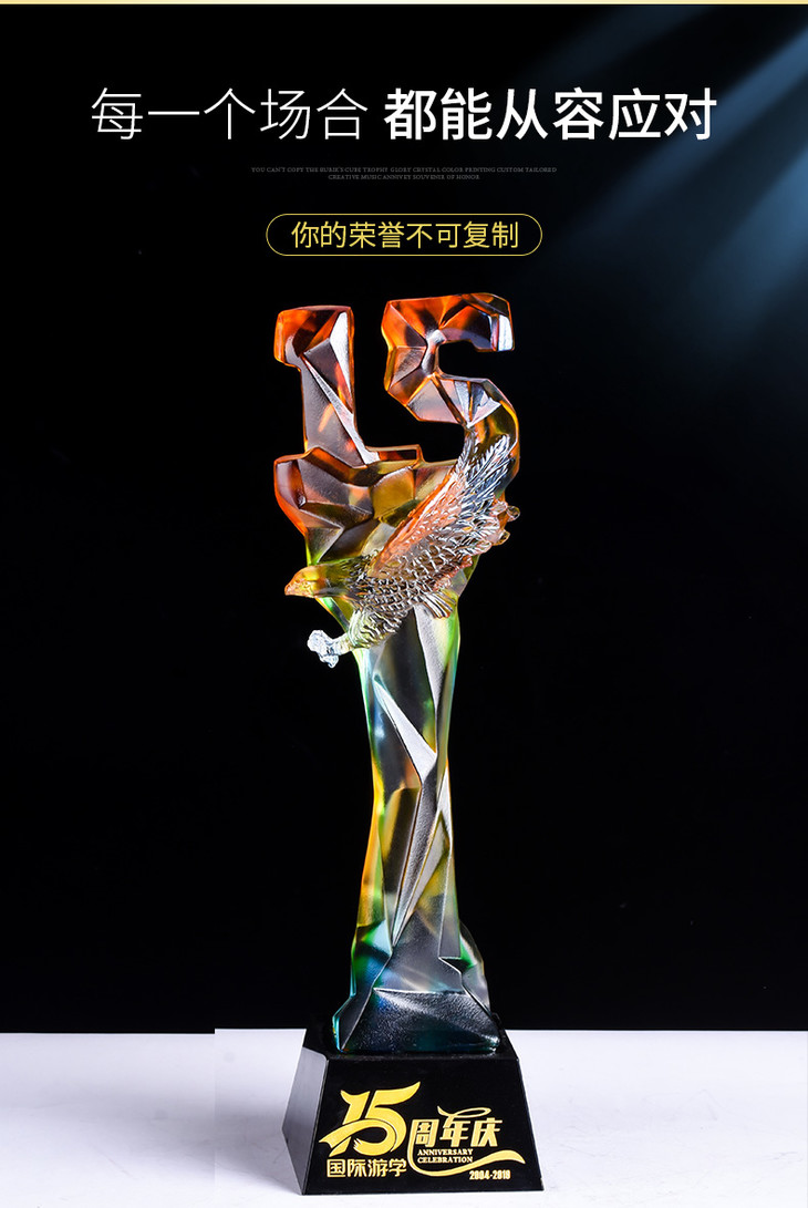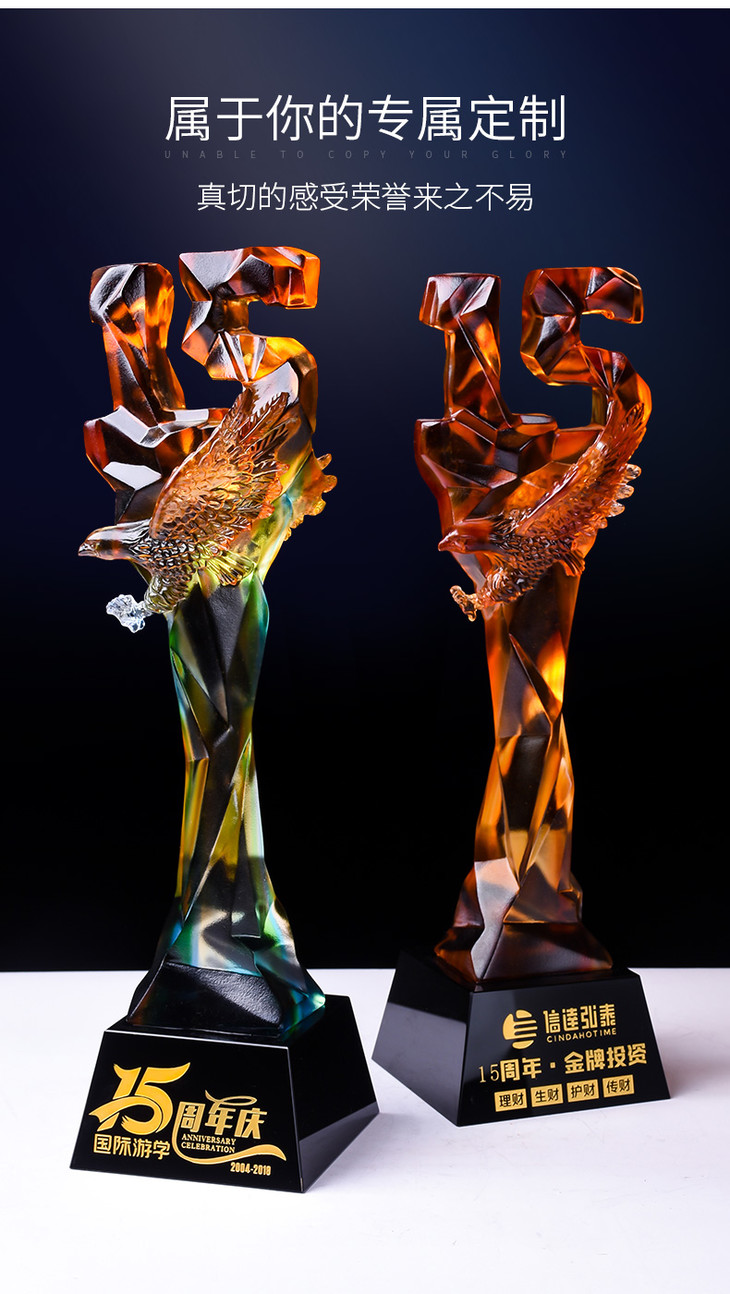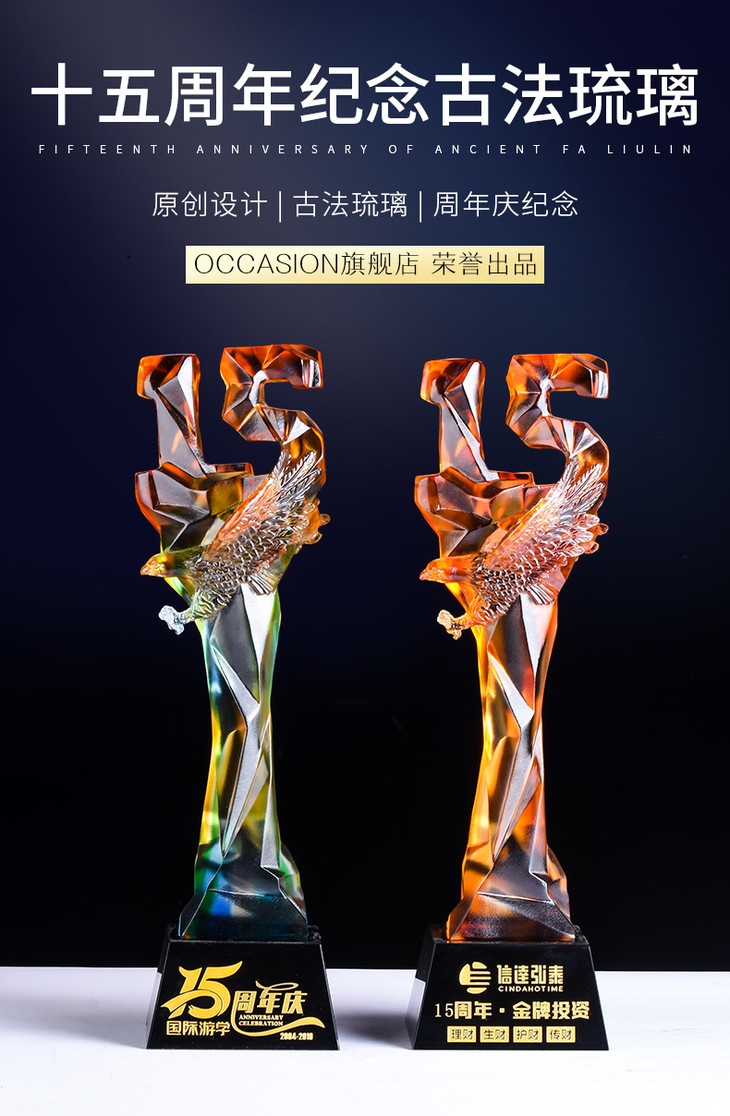 15周年古法琉璃奖杯定制定做企业水晶庆典表彰高档年会员工颁奖