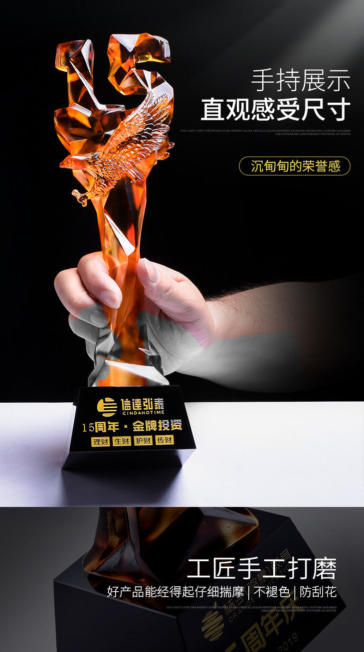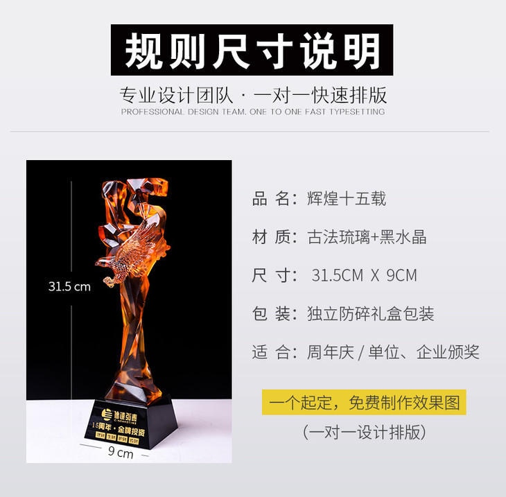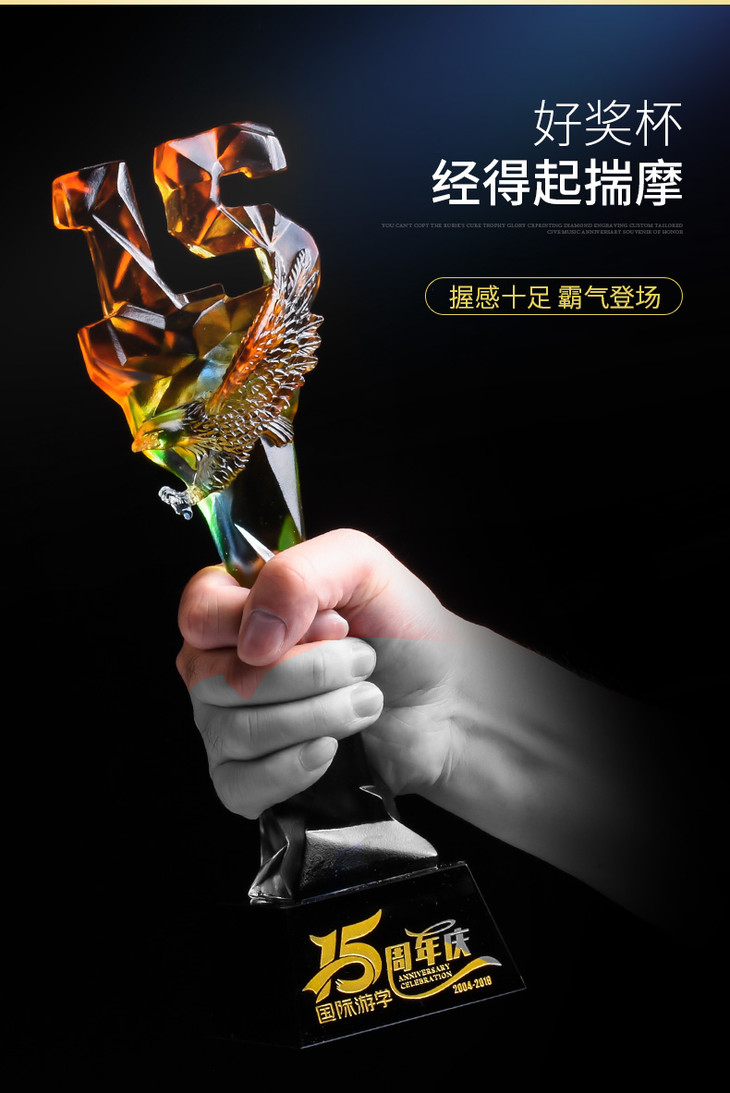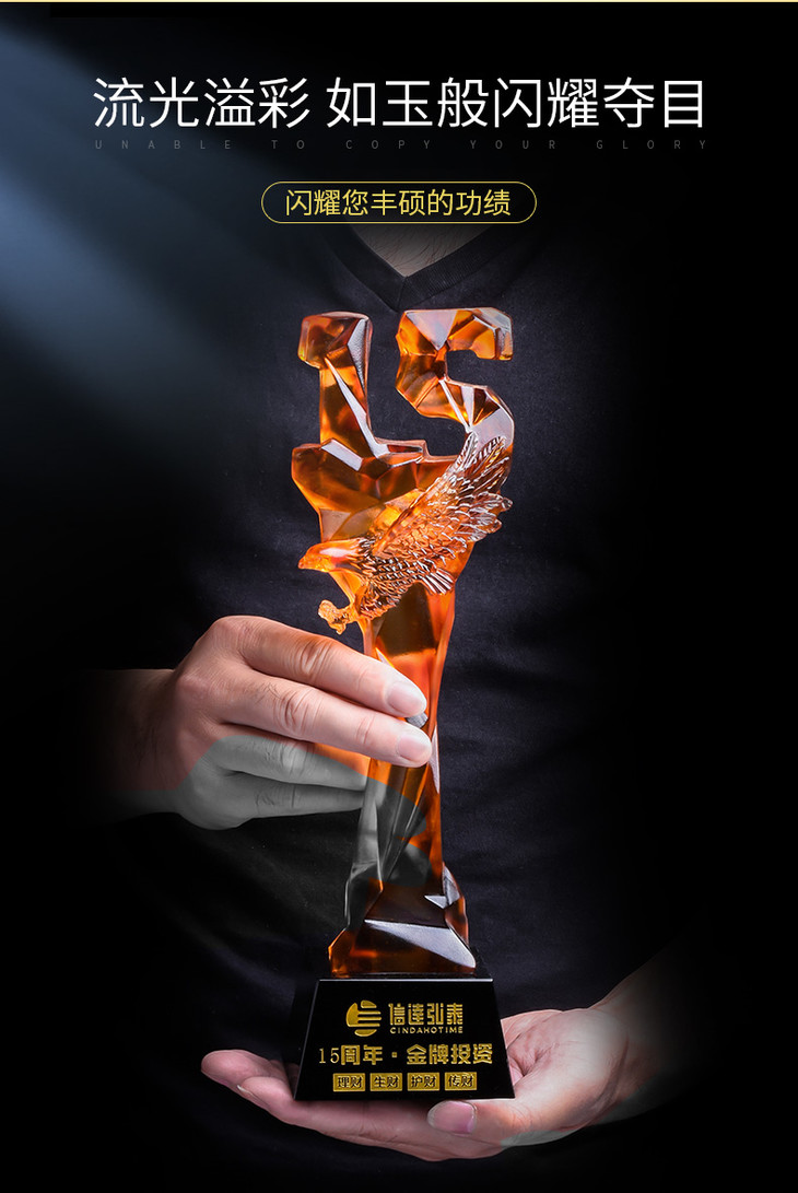 15周年古法琉璃奖杯定制定做企业水晶庆典表彰高档年会员工颁奖