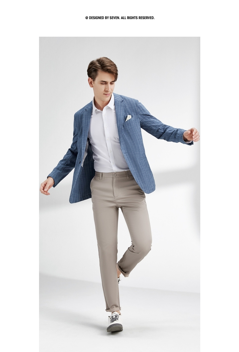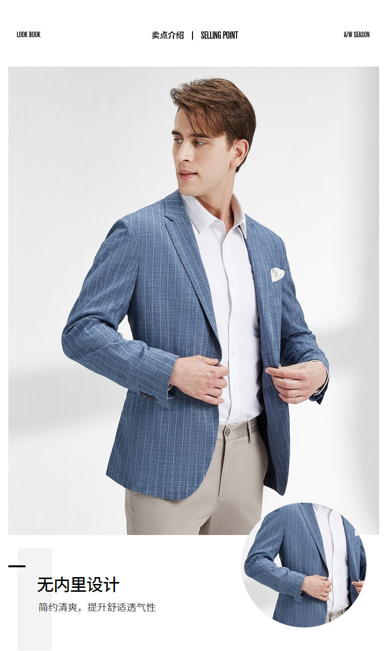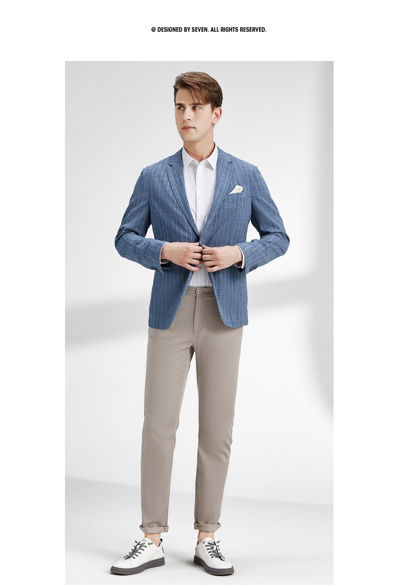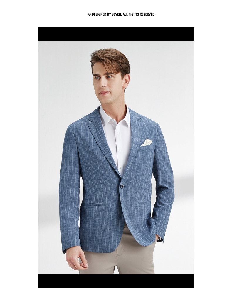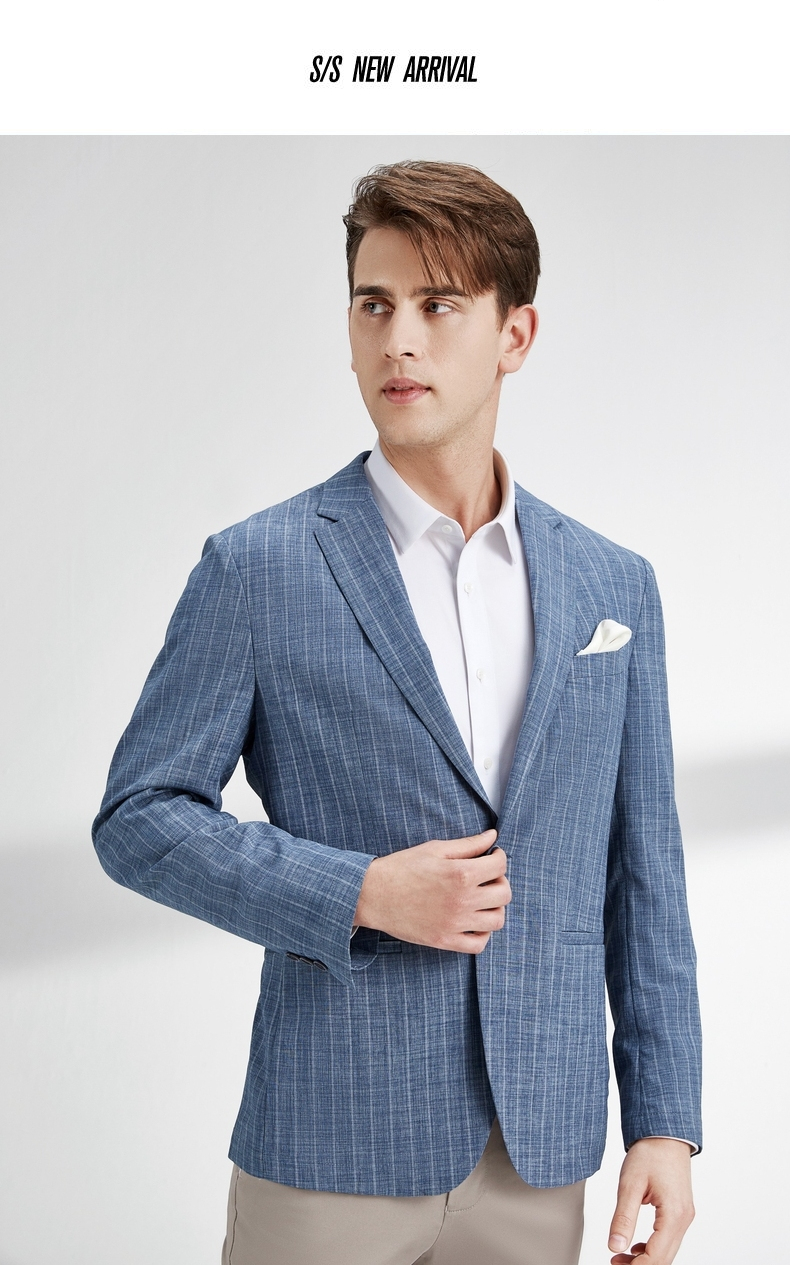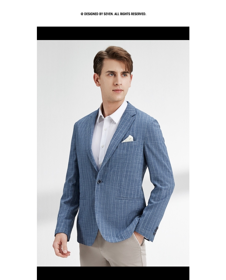 【特价】柒牌西装外套男韩版潮流帅气中青年春秋新款条纹修身上衣单西 122C70060