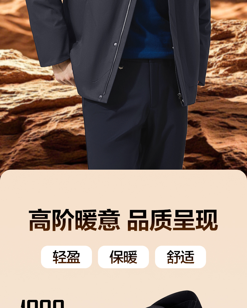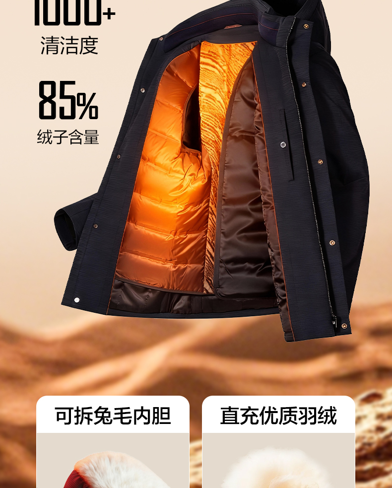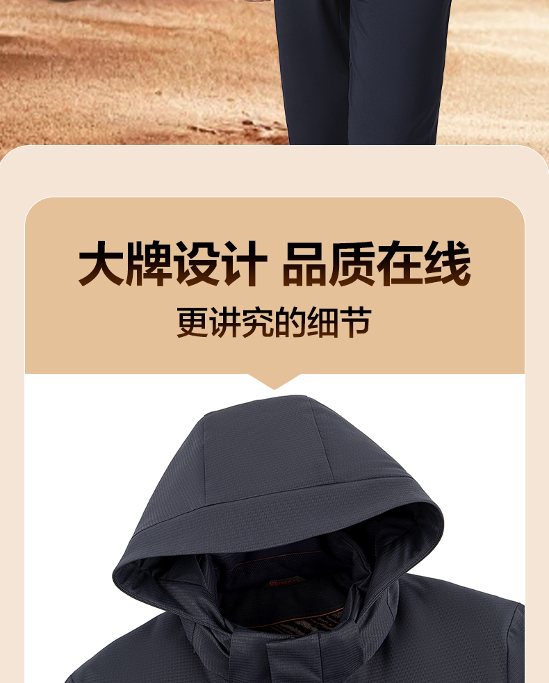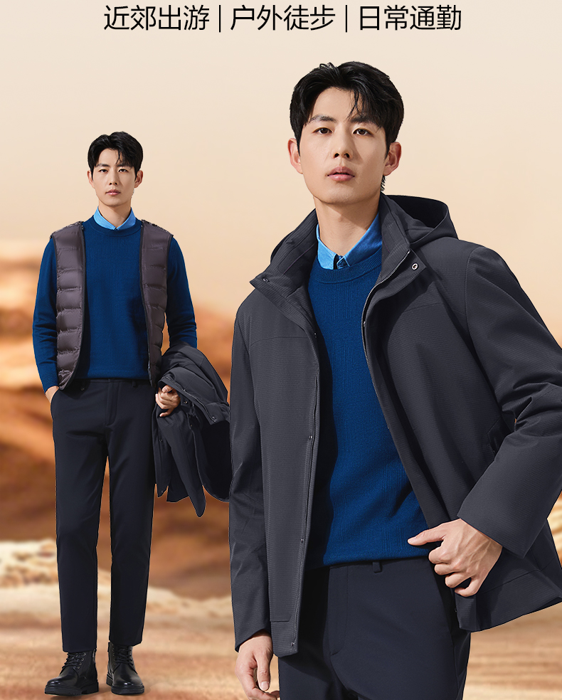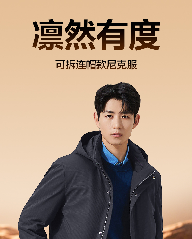 【尼克服/可脱卸兔毛内胆】柒牌提花可拆卸帽领易打理保暖外套男129J70780