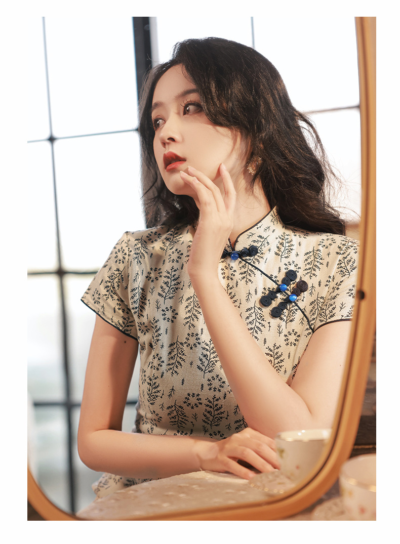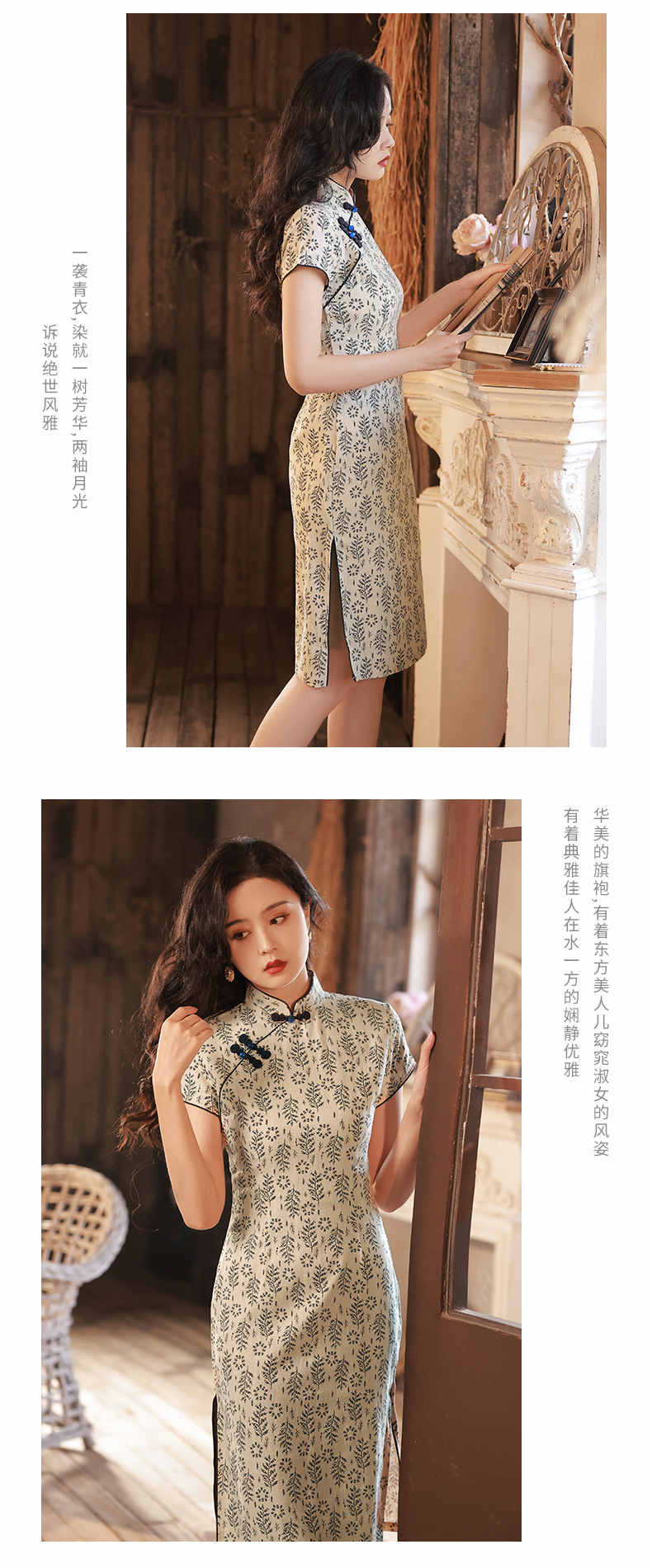 素雅复古民国风,气质年轻款日常旗袍YG-2208