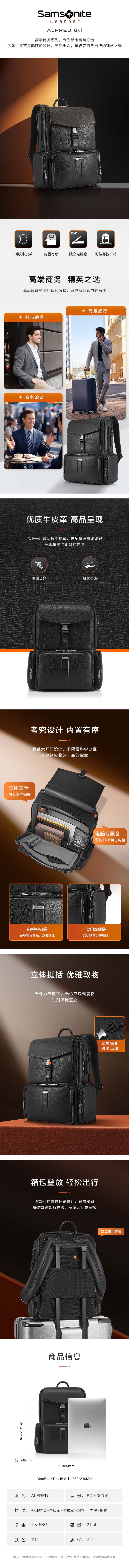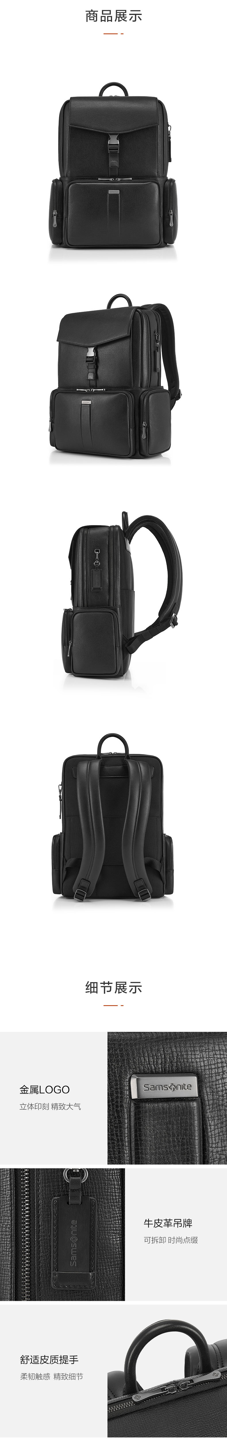 新秀丽ALFRED系列高端商务优质牛皮革翻盖双肩包BZ9*010