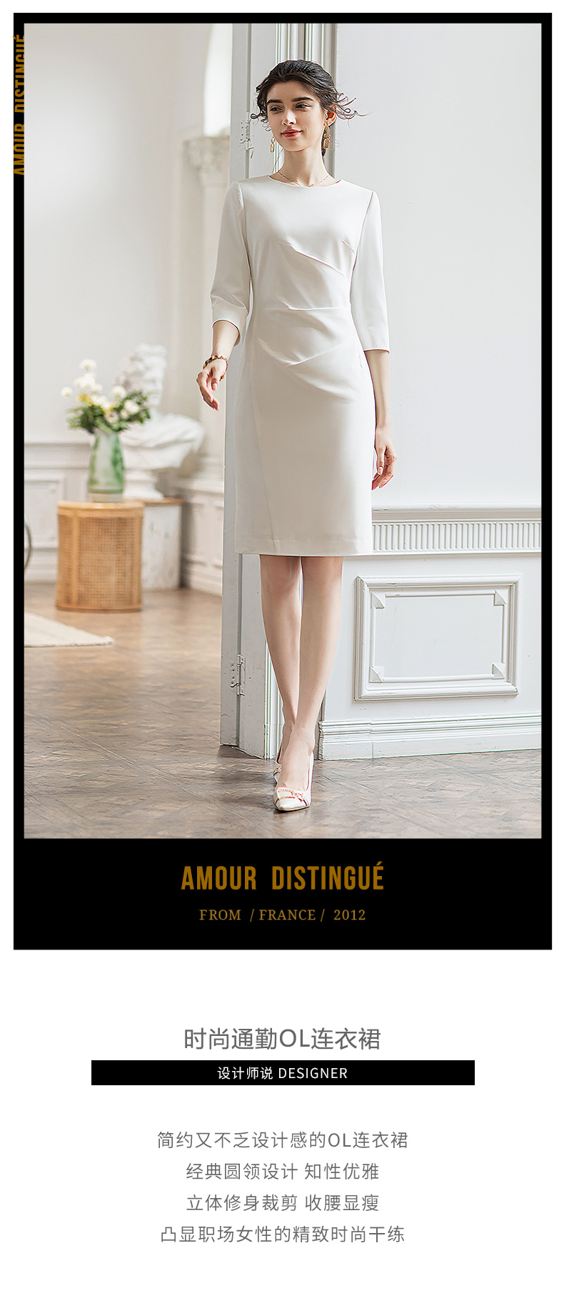 IWY/夏季新款白色连衣裙女收腰显瘦小清新通勤上班气质名媛装Q775