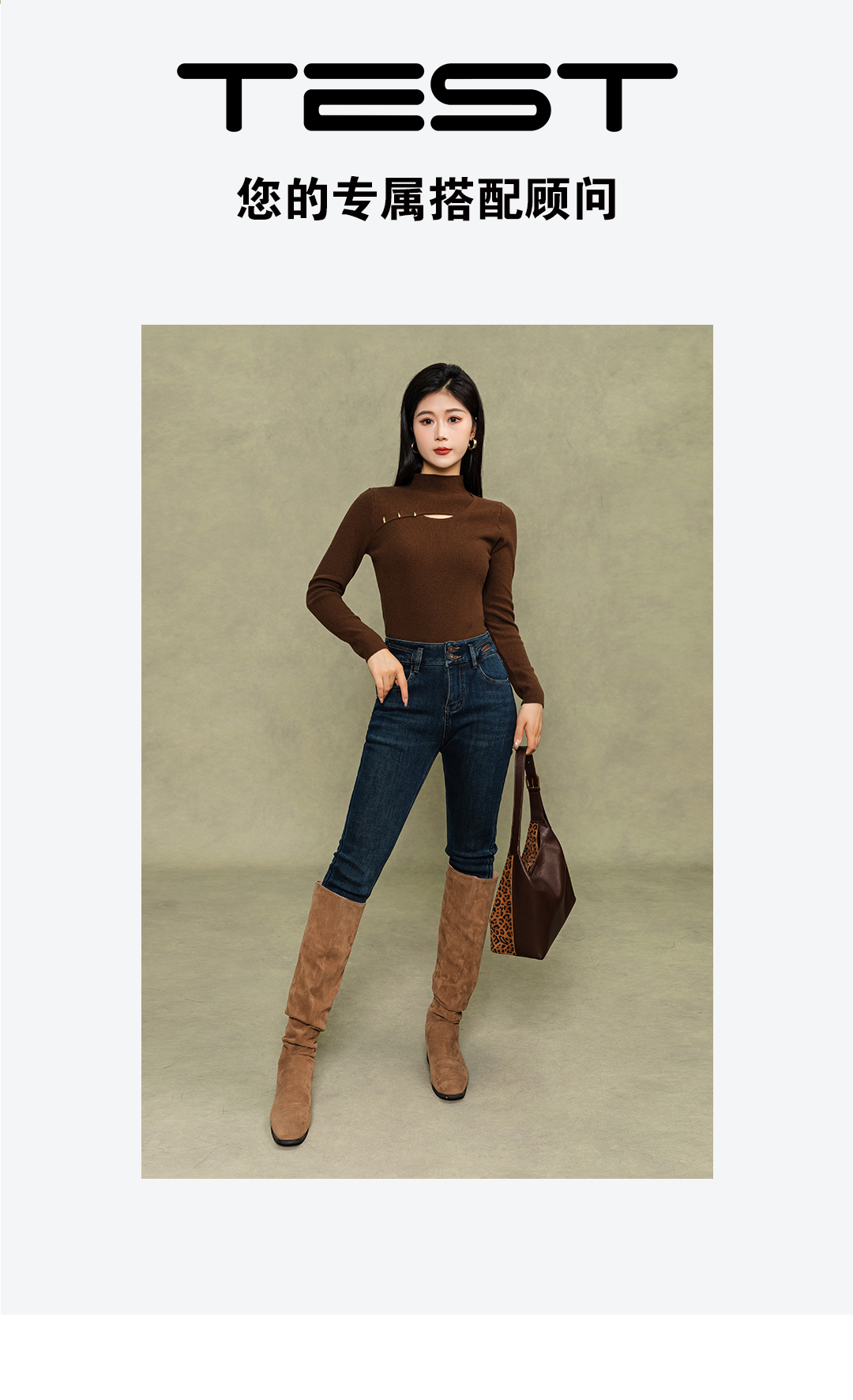 冬上新时尚气质复古风半高领镂空针织衫1254107 商品图4