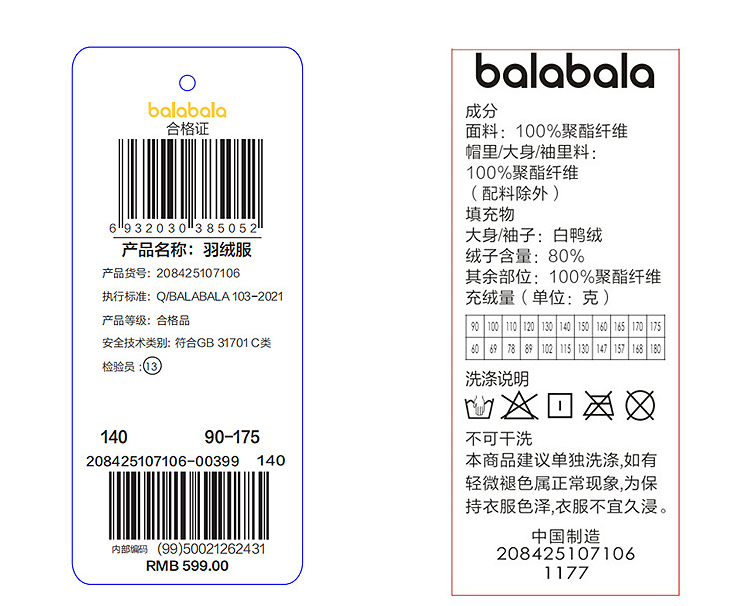 【迪士尼IPbalaOne】巴拉巴拉童装儿童羽绒服男女童2025冬易打理