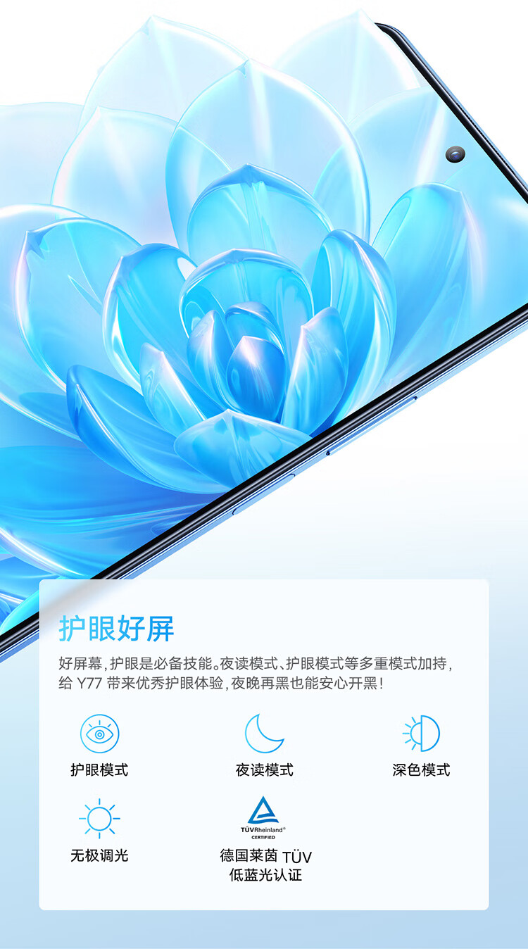 【广电购机惠】老用户专享优惠,办5G套餐送5G手机~vivo Y77 12GB+256GB 晶岩黑 旗舰级80W双芯闪充 5G天玑930 120Hz护眼原色屏【5G手机】