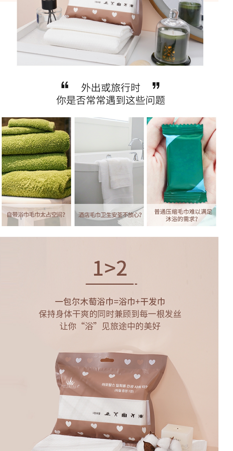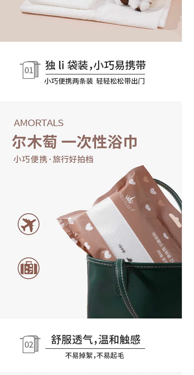 【YZ】尔木萄一次性浴巾便携式出差旅行酒店用纯棉干湿两用单独包装一个