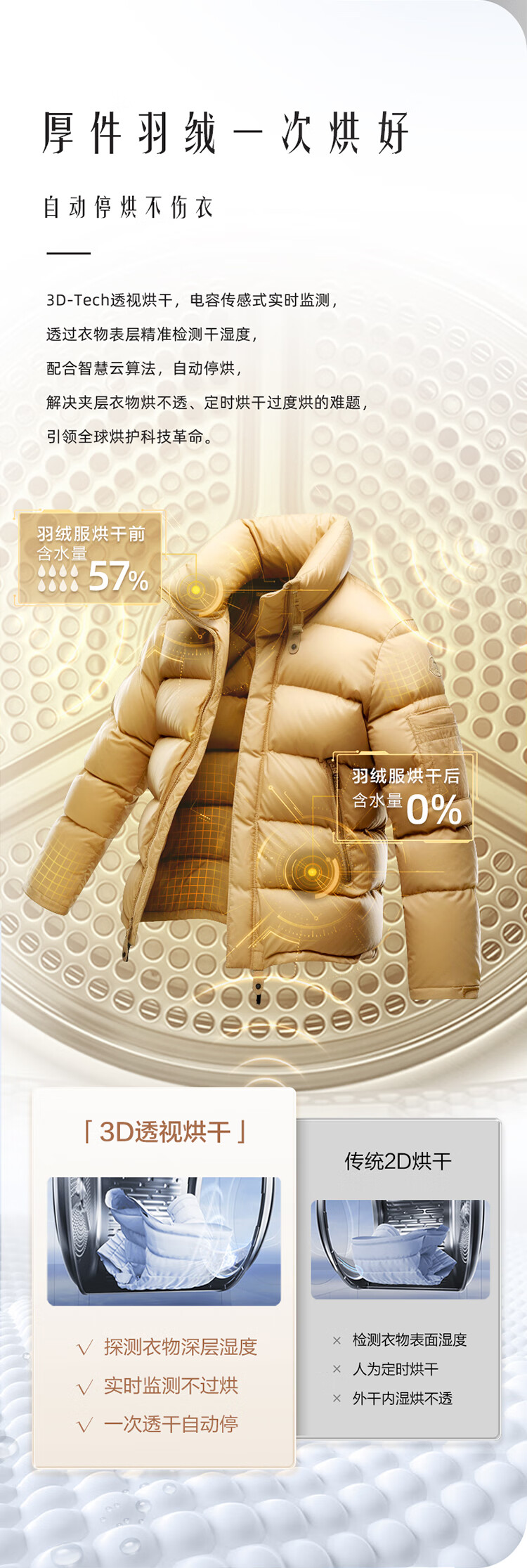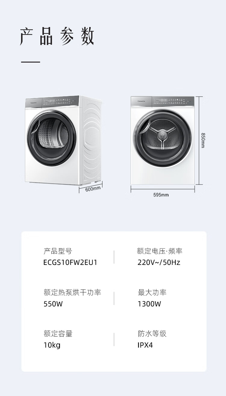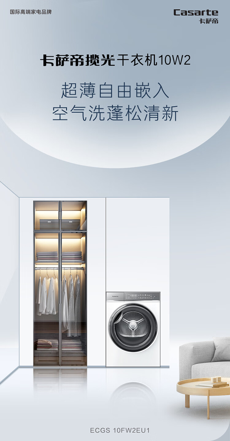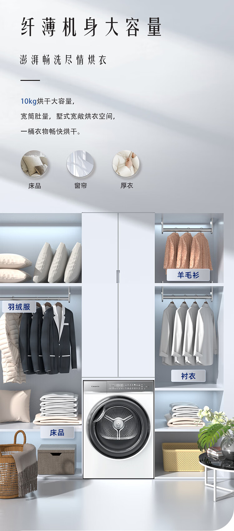 卡萨帝(Casarte)揽光W2烘干机 10公斤双擎热泵干衣机 干衣护理机 3D透视烘干 空净过滤 ECGS10FW2EU1