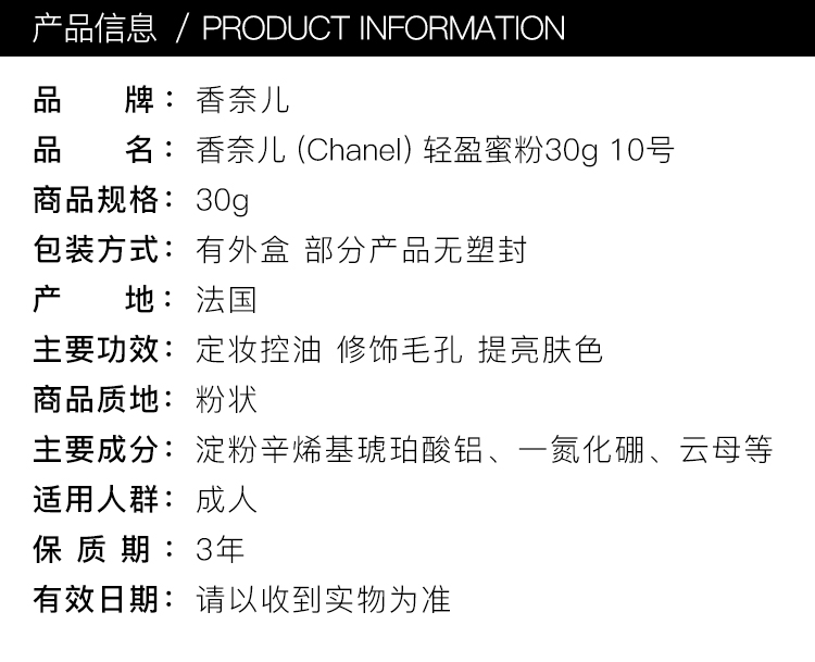 香奈儿(Chanel)轻盈蜜粉30g