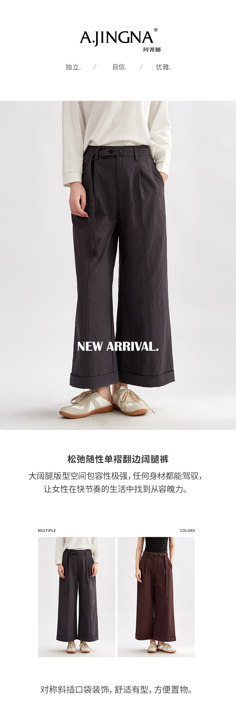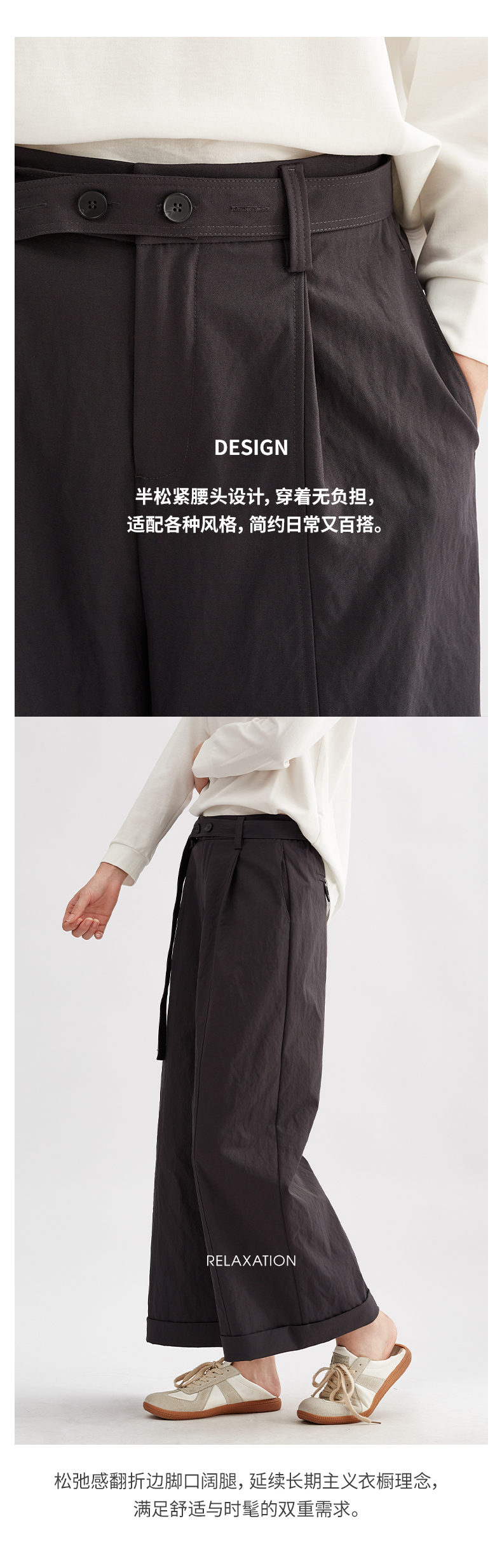 【简约日常】阿菁娜松弛随性单褶翻边阔腿裤F30Q210009