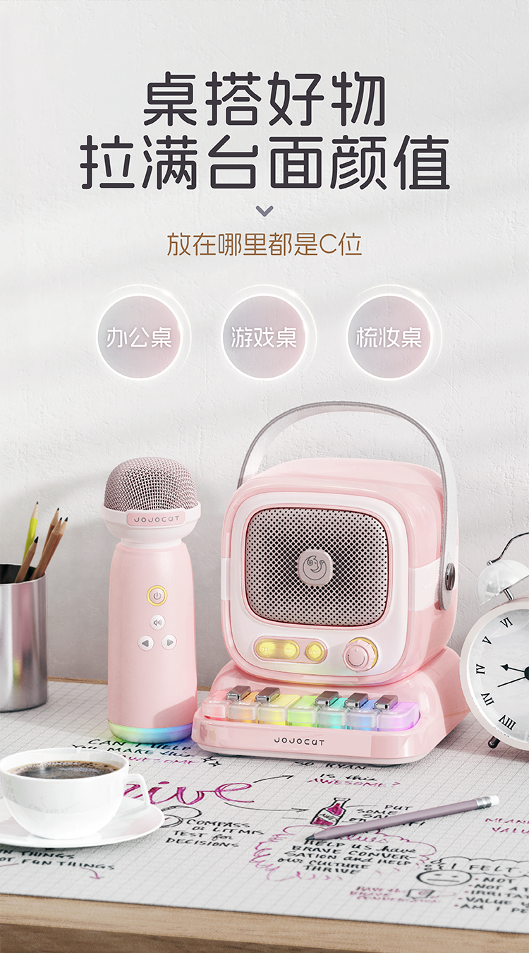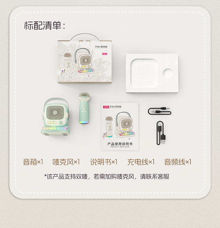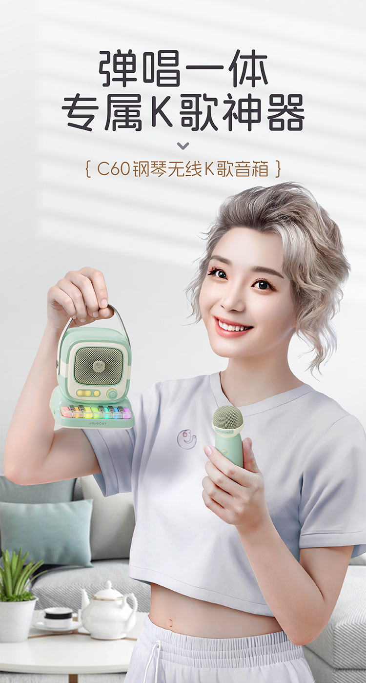 【弹唱一体,专属K歌神器!】K歌蓝牙音箱 话筒音响一体 小型家用KTV手提户外扩音器 立体声单双唛-QA