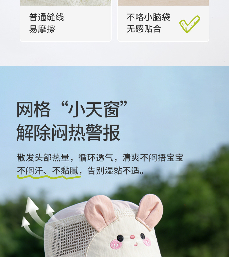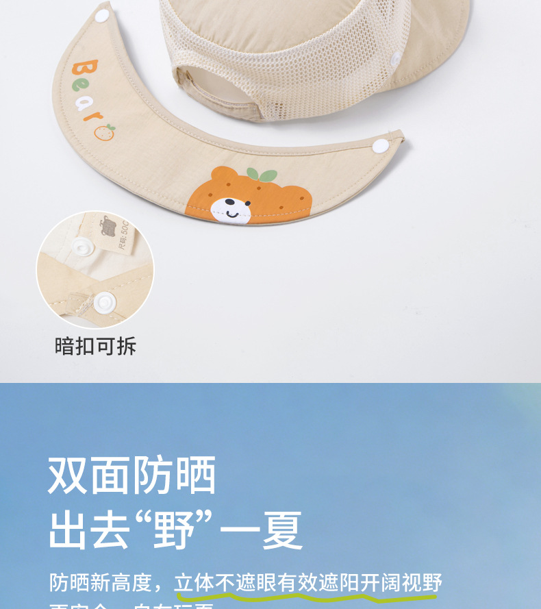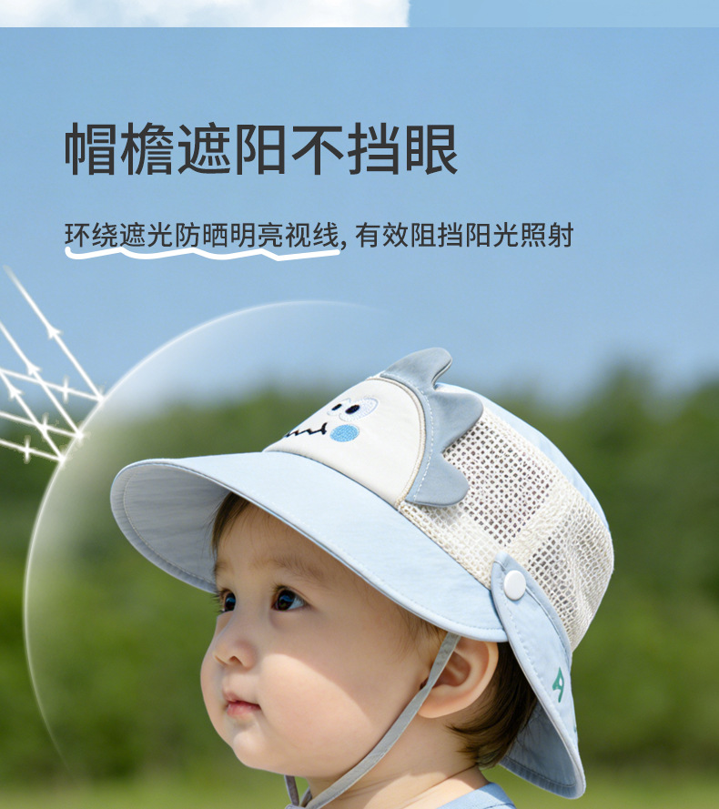 【纯棉面料❗️太阳帽】宝宝帽子春夏薄款小月龄儿童可拆卸遮阳帽渔夫帽太阳帽网格。ya