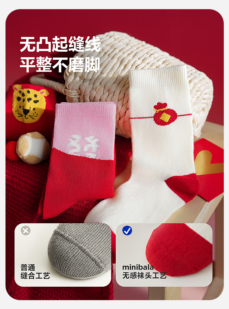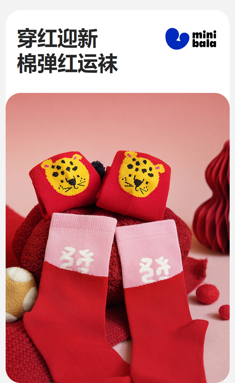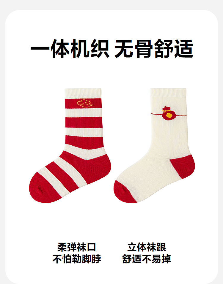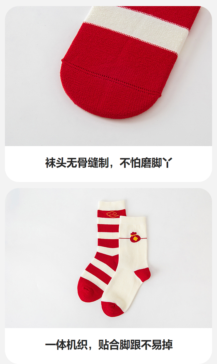 【新年红款】迷你巴拉儿童袜子男女童宝宝红运中筒袜棉弹柔软新款