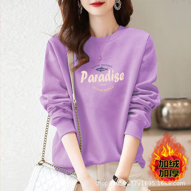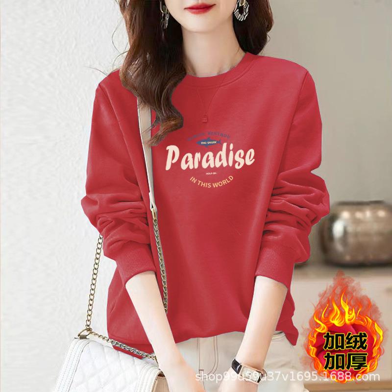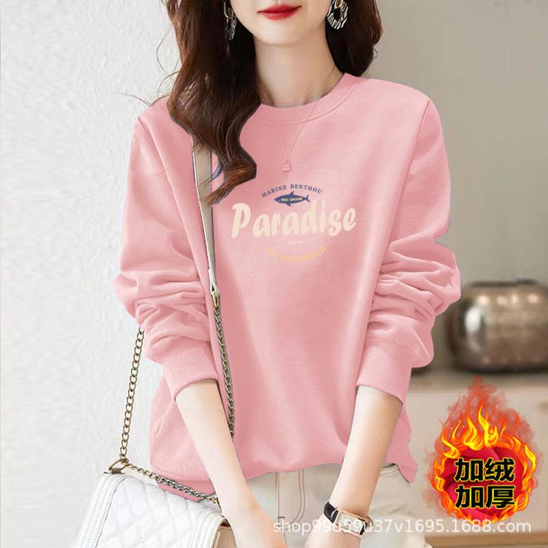 加绒棉质圆领宽松卫衣女式休闲显瘦时尚外套上衣字母印花运动衣