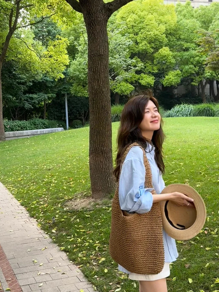 建议全体姐妹都给我去穿这个衬衫!! 整个版型非常有南法风情 棉麻的质感yyds一点也不廉价感!又轻薄又舒服~ 日常通勤 出门玩的时候穿都很合适,随便拍拍就很好看!!!