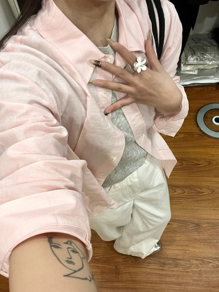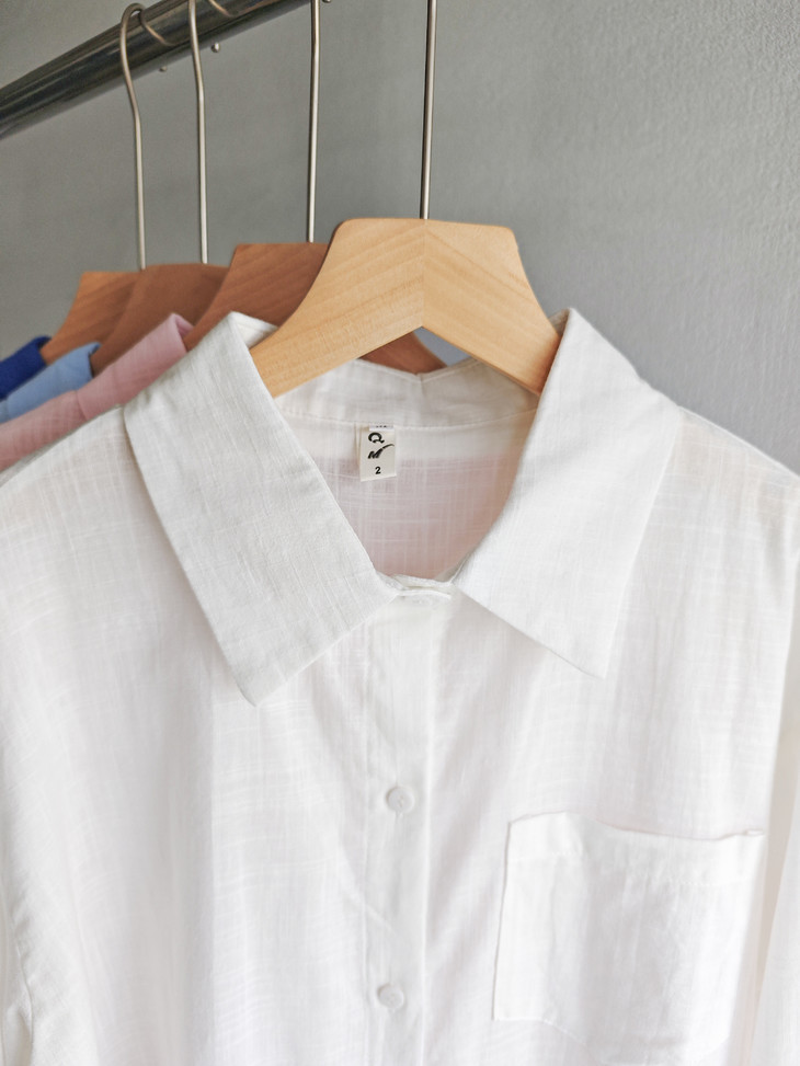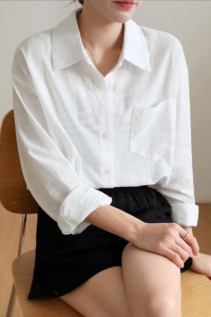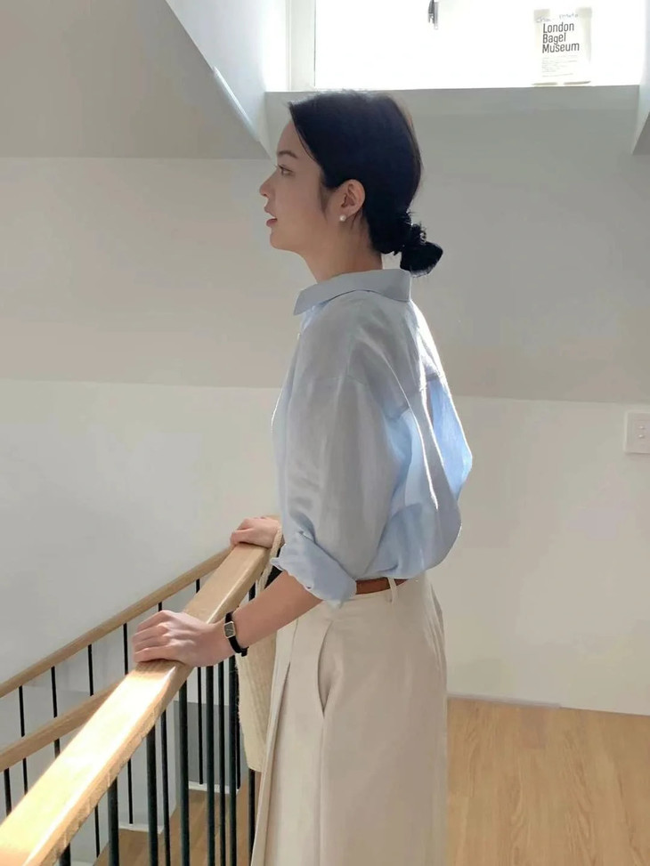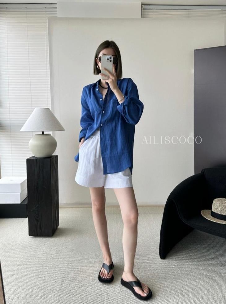 有品味的姐妹衣橱里一定要有的棉麻衬衫! 内搭背心吊带或叠穿在里面非常好看! 清爽的通勤/出街穿搭必备款