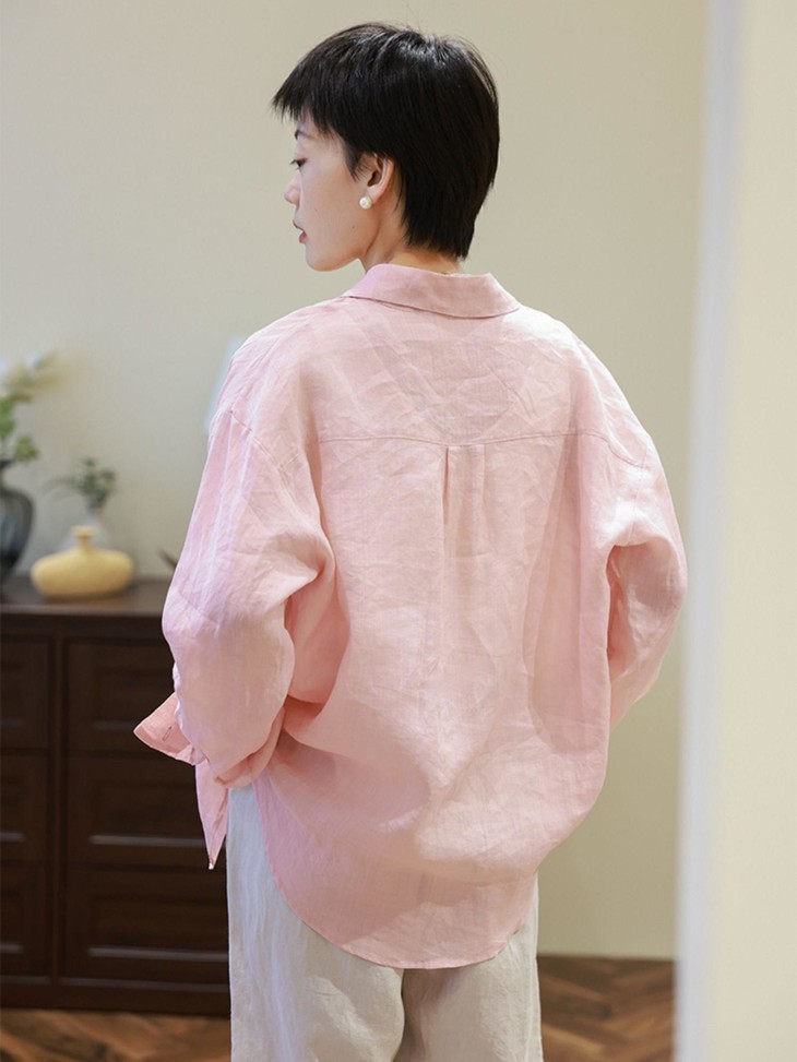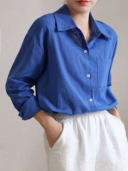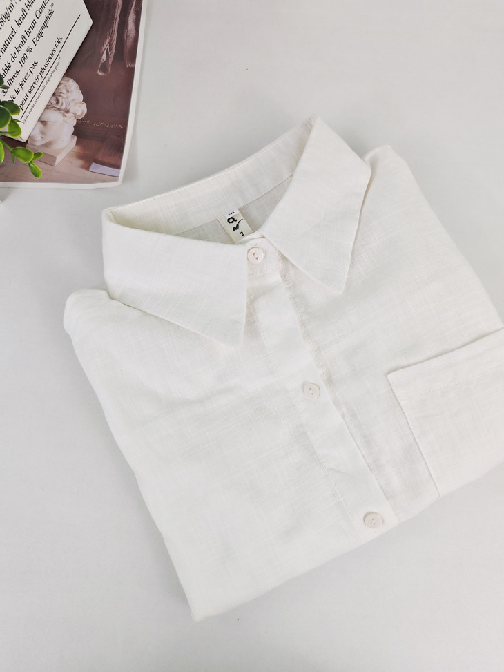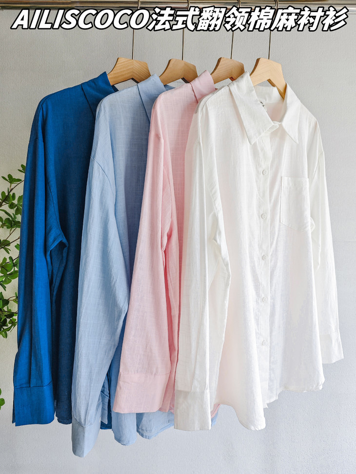 🔔🔔秋季新款💥清爽系棉麻衬衫🌟微落肩更显瘦!一件从春穿至秋❗❗【AILISCOCO法式翻领棉麻衬衫】单穿或叠穿都很好看