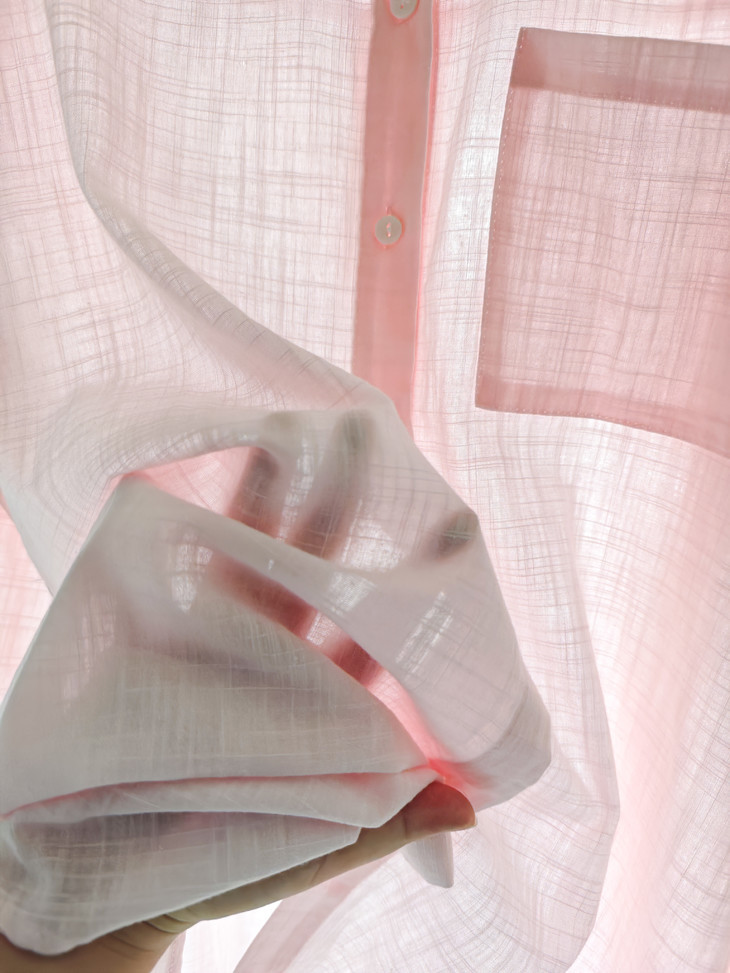 由51%+49%亚麻混纺而成的面料, 本身凉快透气又自带筋骨感 特别现在是初秋还很热,穿上舒爽不闷热,真的会越穿越爱! 棉麻虽然爱皱但也是它独一无二的标志 有着自然的高级感,松弛慵懒