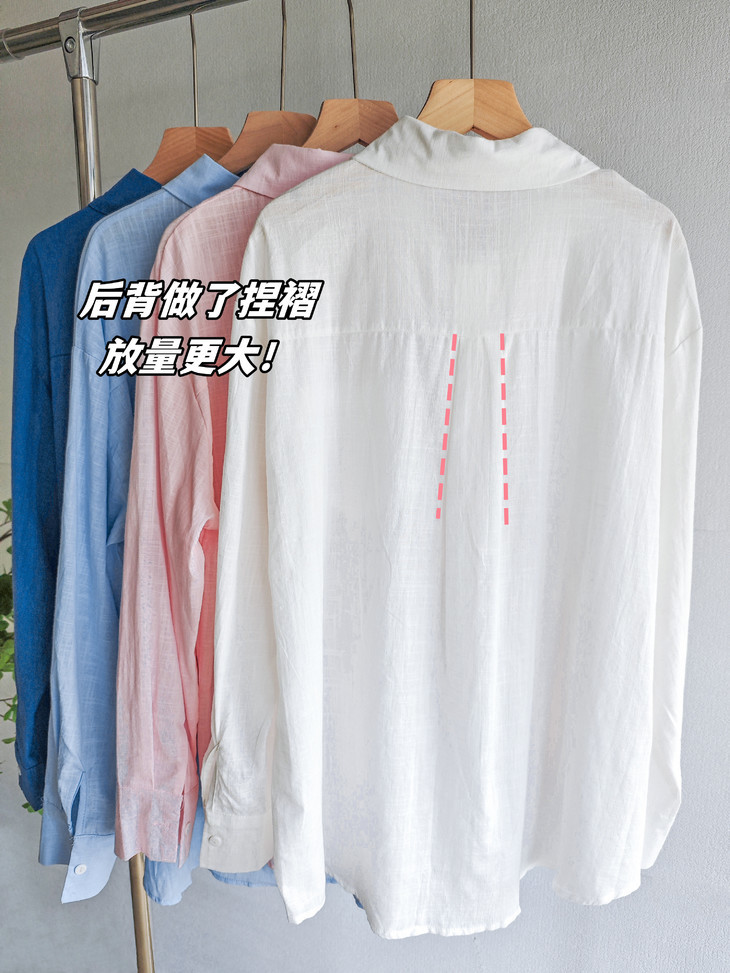 衬衫后背中间做了褶皱, 穿上后会有个空层更利于透气,出汗也不贴,还有宽松立体的动感 从版型角度来看,做背褶的衬衫上身后的廓形,会更显人瘦