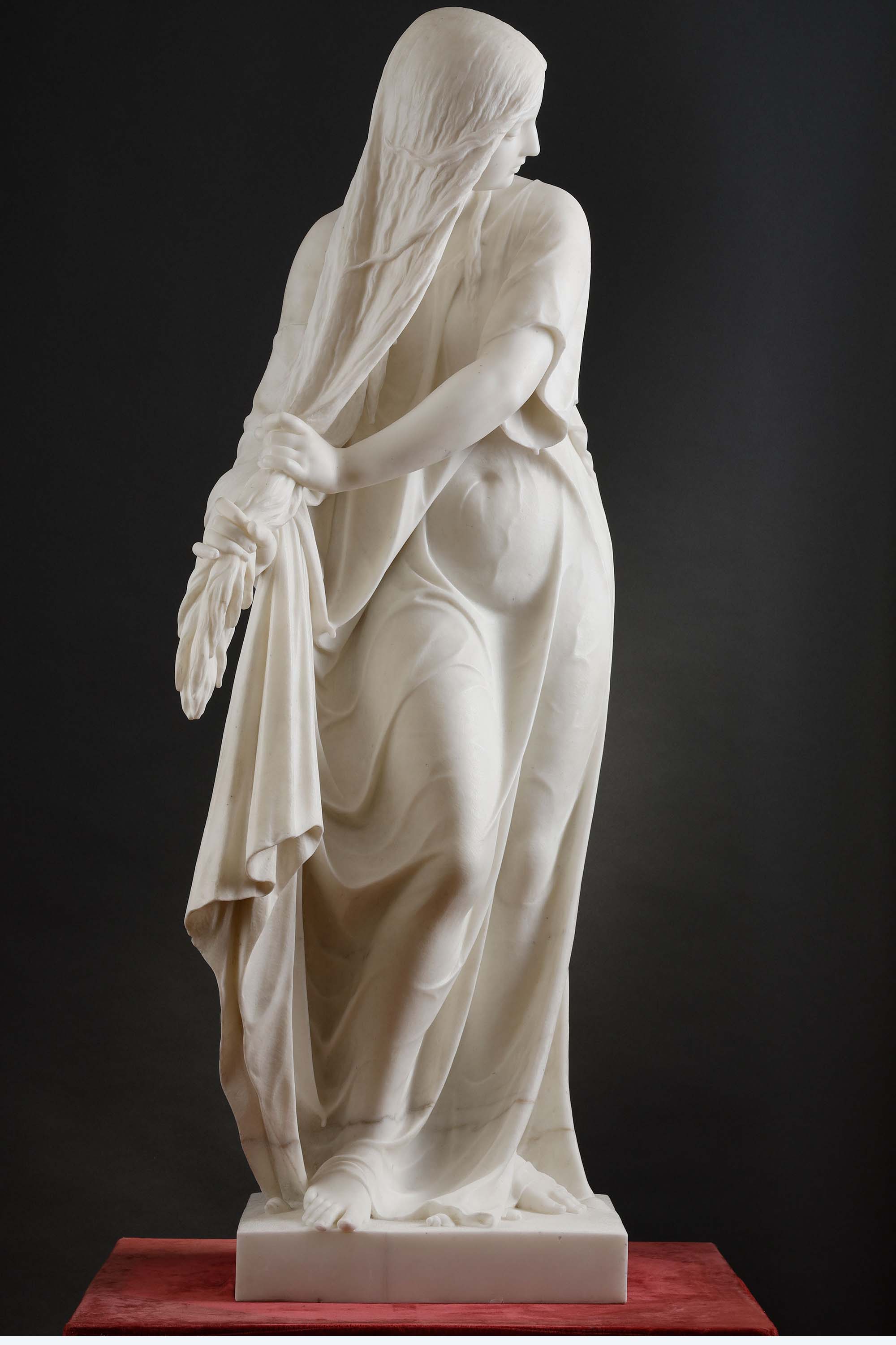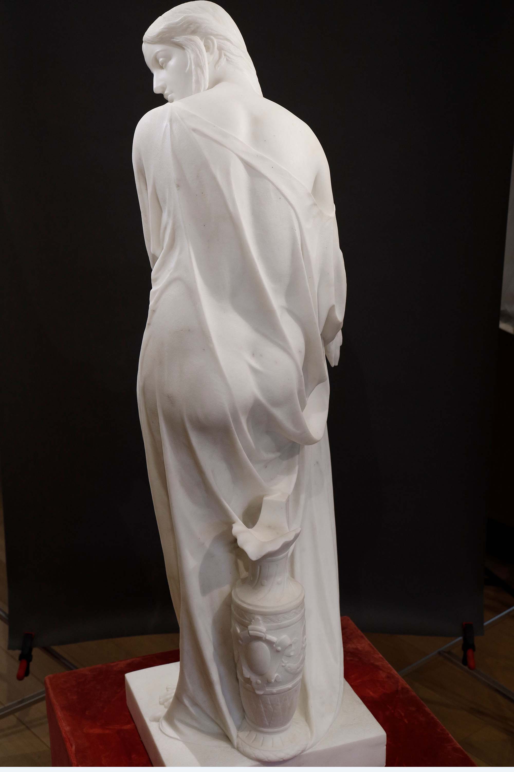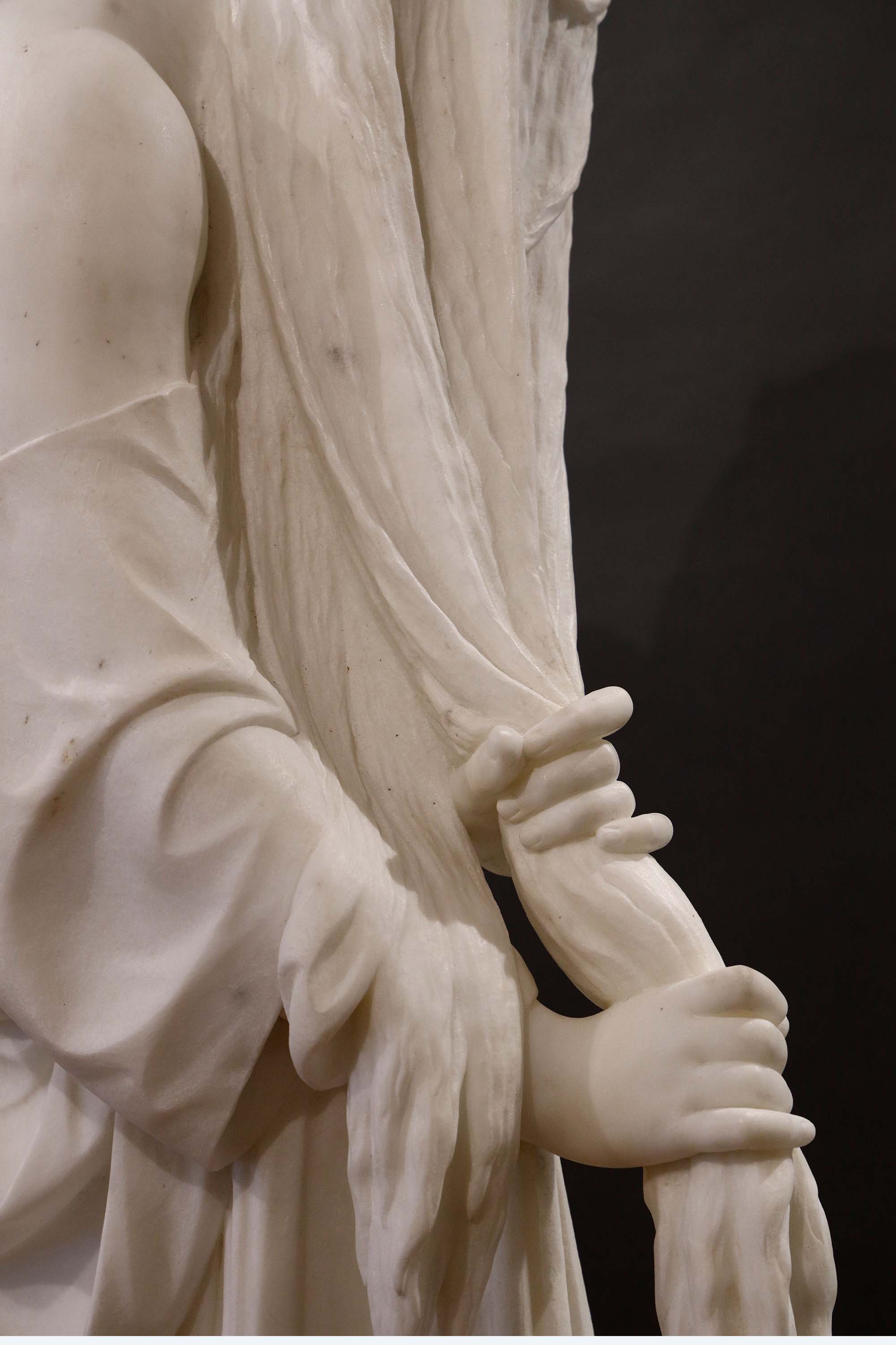 19世纪中叶比利时雕塑家Charles-Auguste Fraikin签名创作人物主题卡拉拉大理石雕塑作品《海浴归来》
