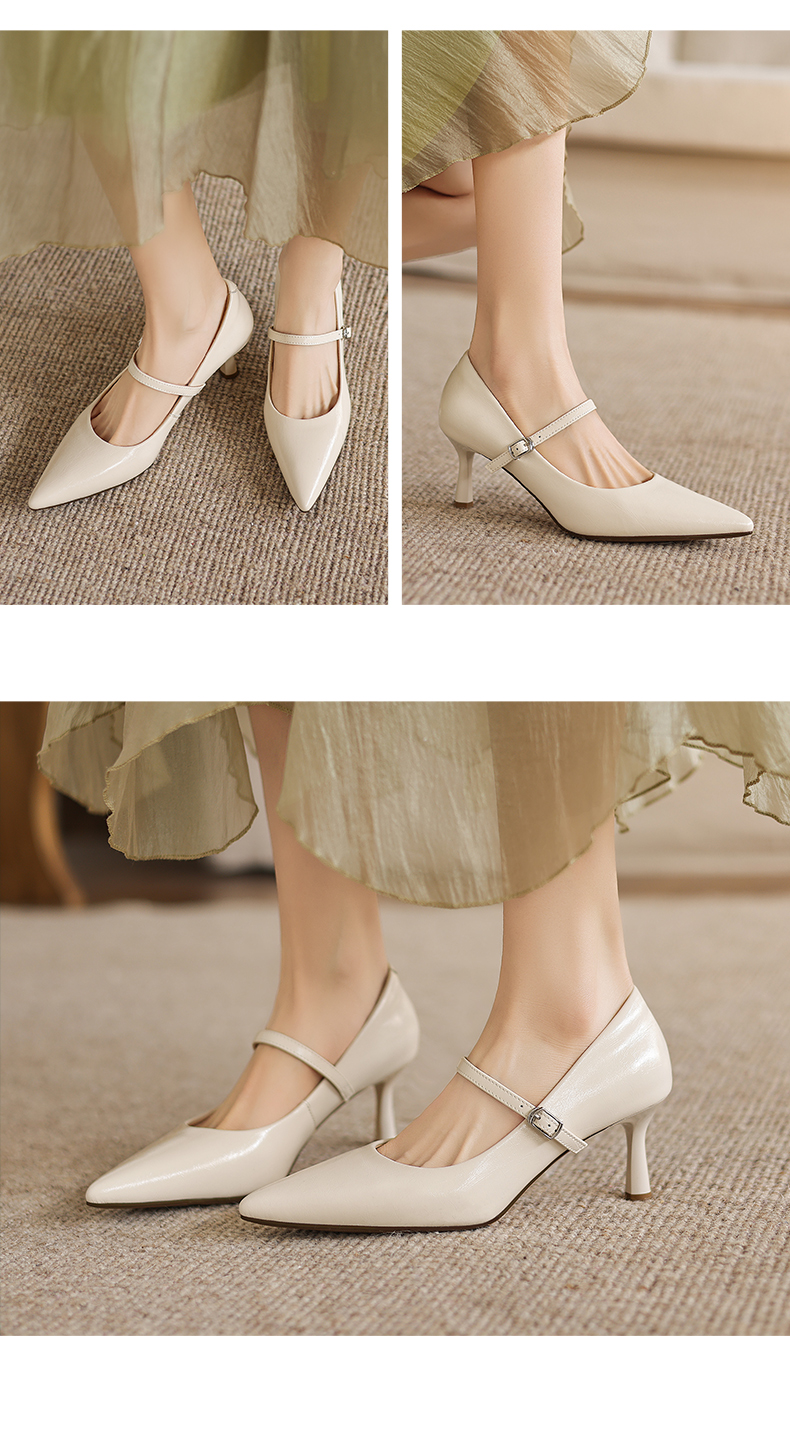 阿么手工女鞋法式气质一字带细跟高跟鞋尖头漆皮浅口单鞋女6.5CM 商品图1