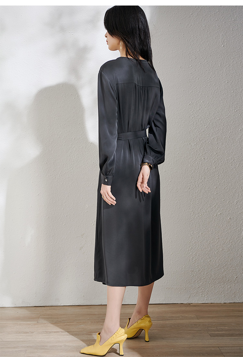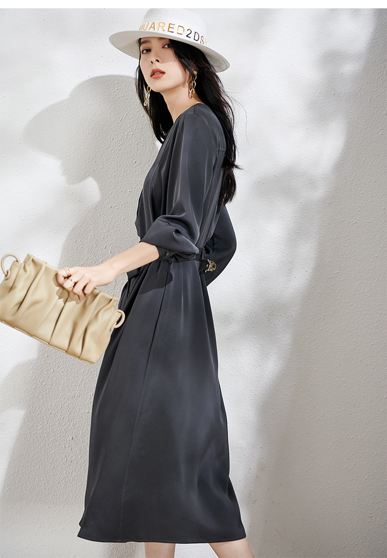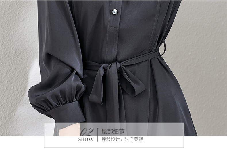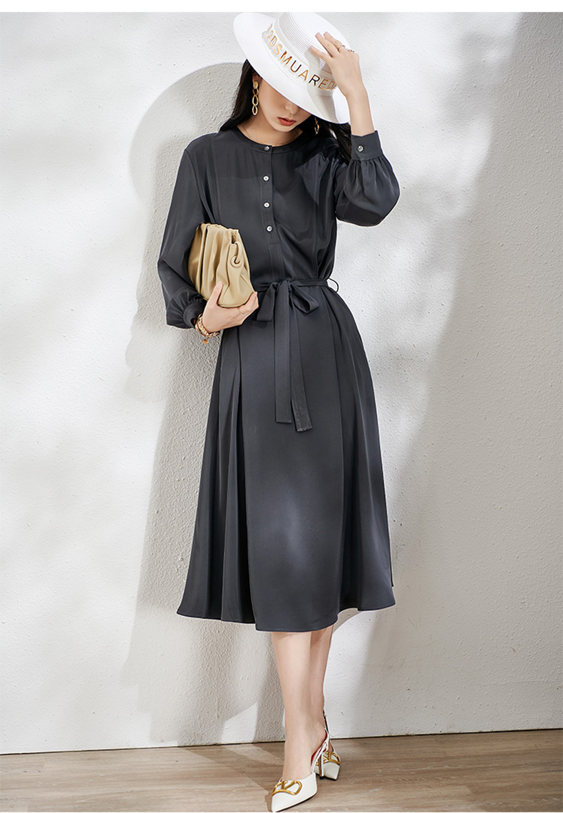 芳外春季新款时尚气质通勤中长裙宽松收腰长袖圆领连衣裙1531