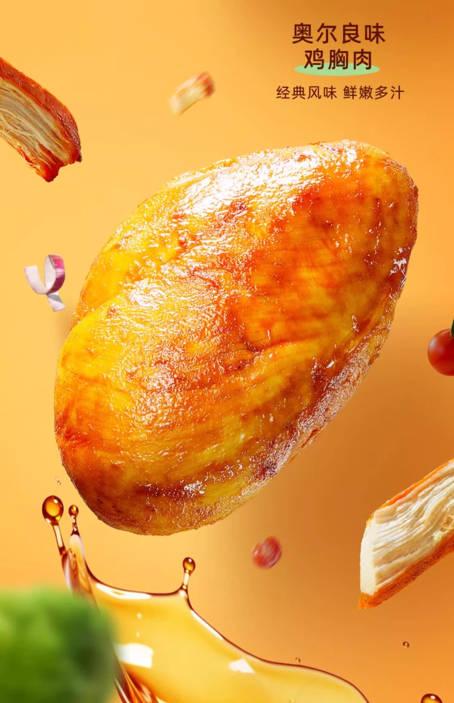 【饱腹❗️即食鸡胸肉】肉嫩多汁,好吃不惧“腹〞罪感!奥尔良味/黑椒味