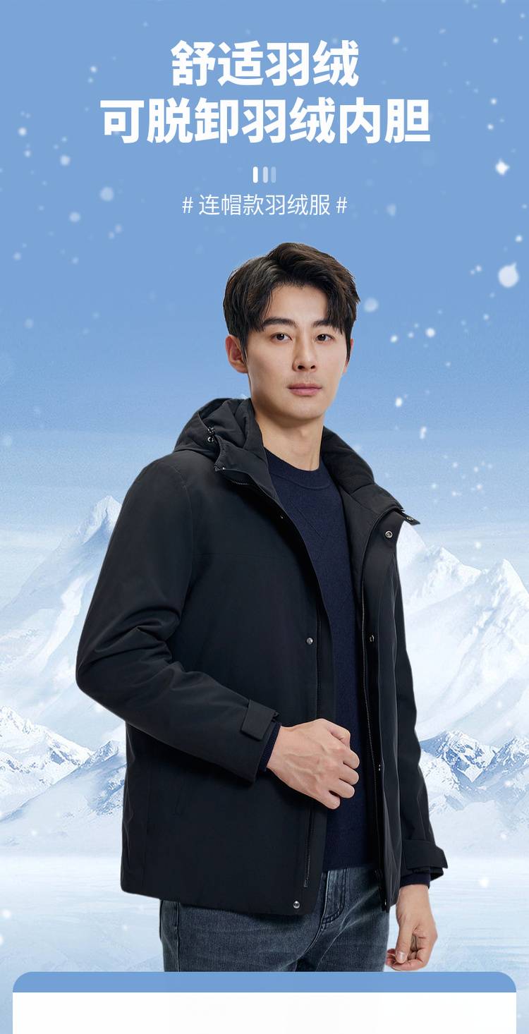 圣得西男装可脱卸羽绒内胆连帽羽绒服2462041706
