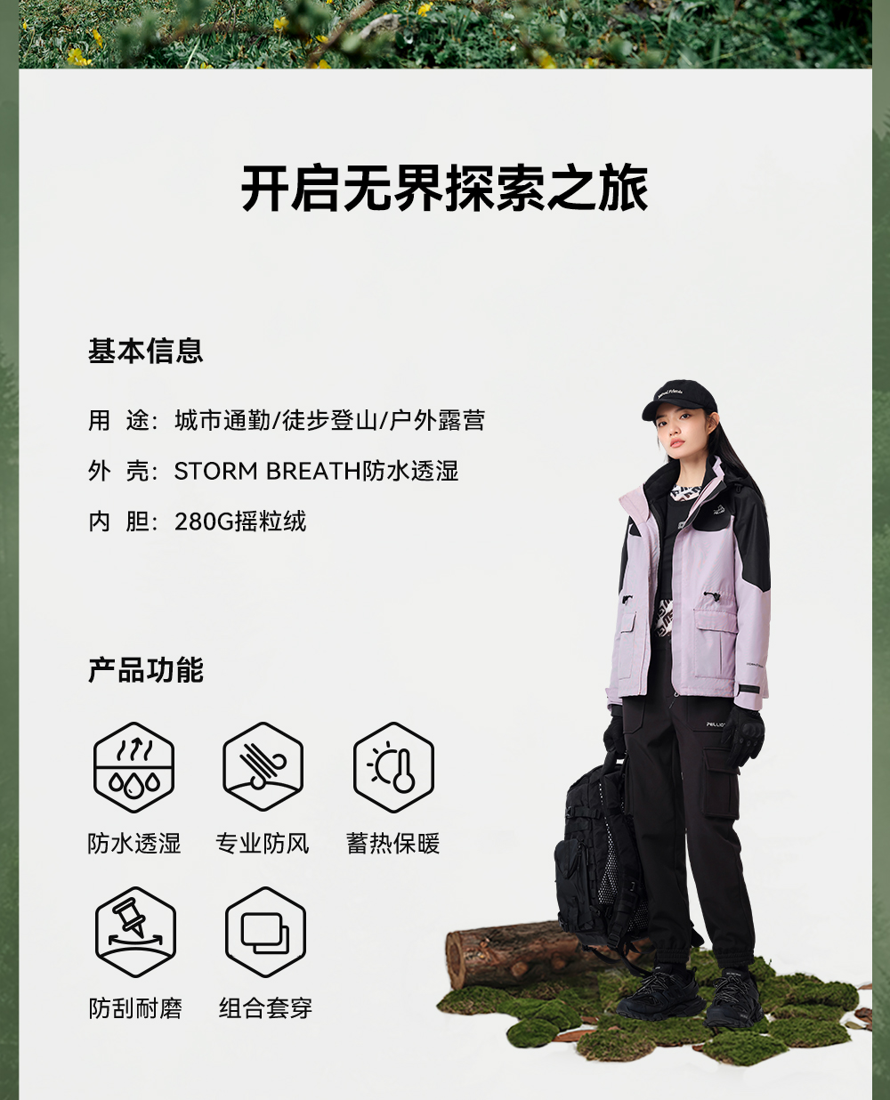 【成毅同款】伯希和山色户外冲锋衣女三合一男新款防风登山服外套