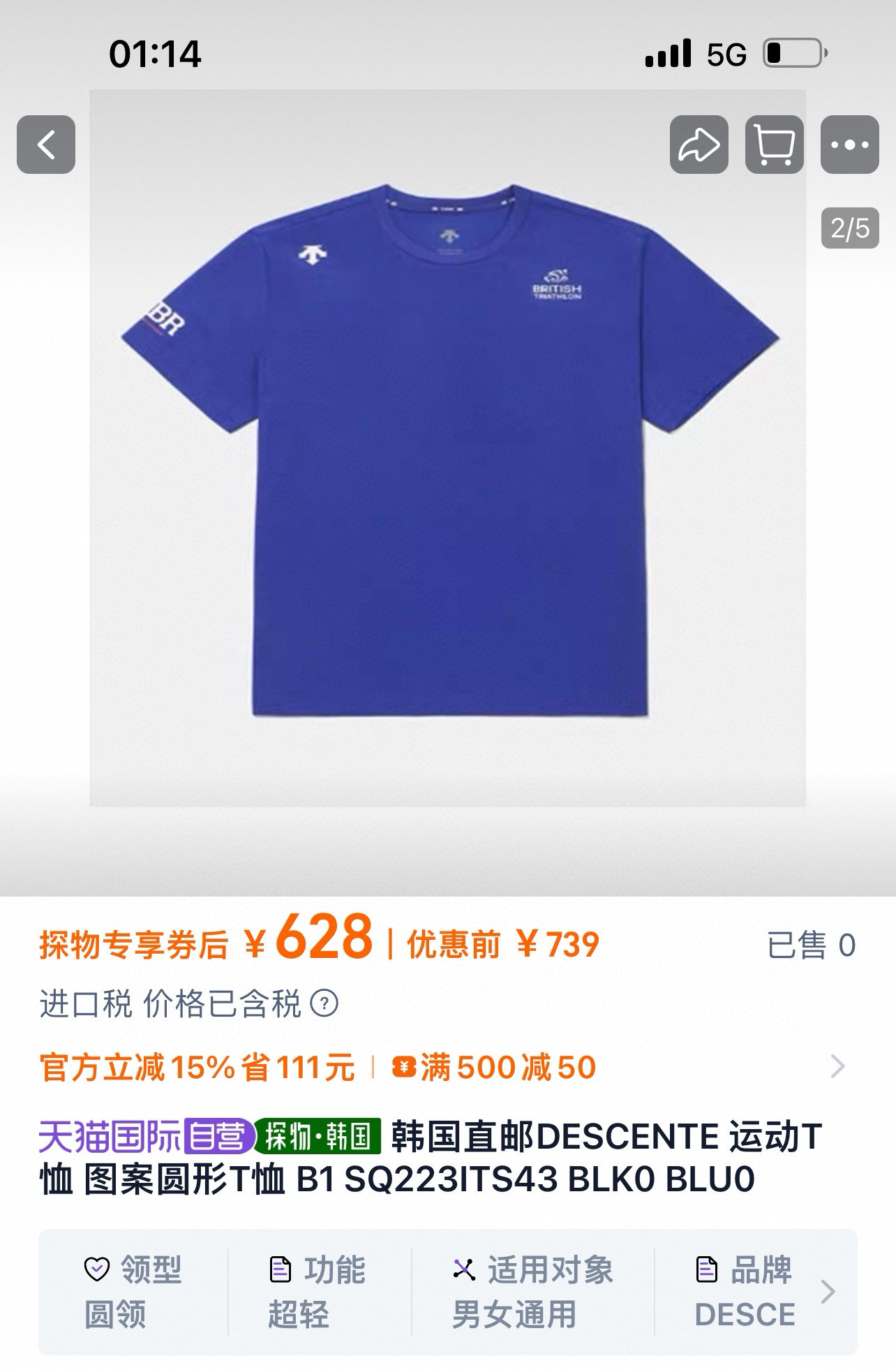 迪桑T铁人三项赛联名款短袖速干T,代购600➕