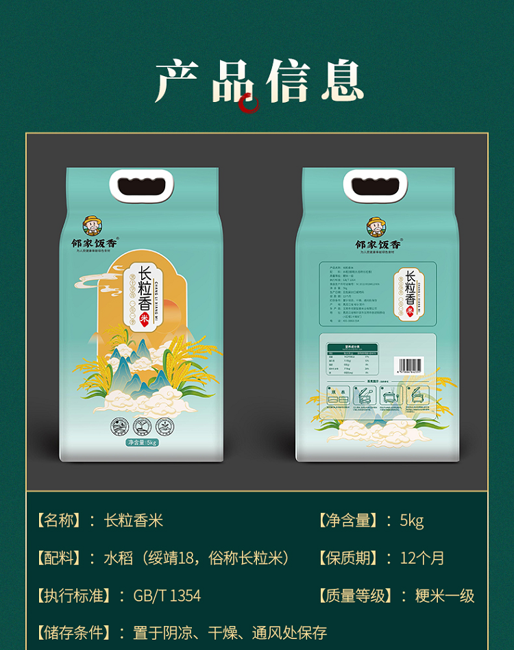 邻家饭香 东北大米 长粒香米 5kg/袋 鸭稻共生黑土地种植 LJFX86-C