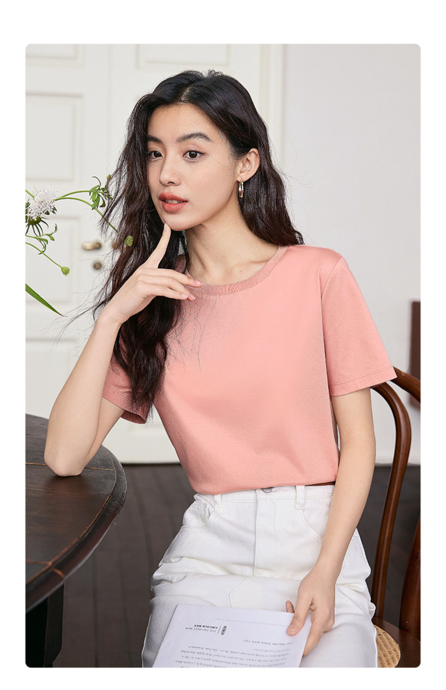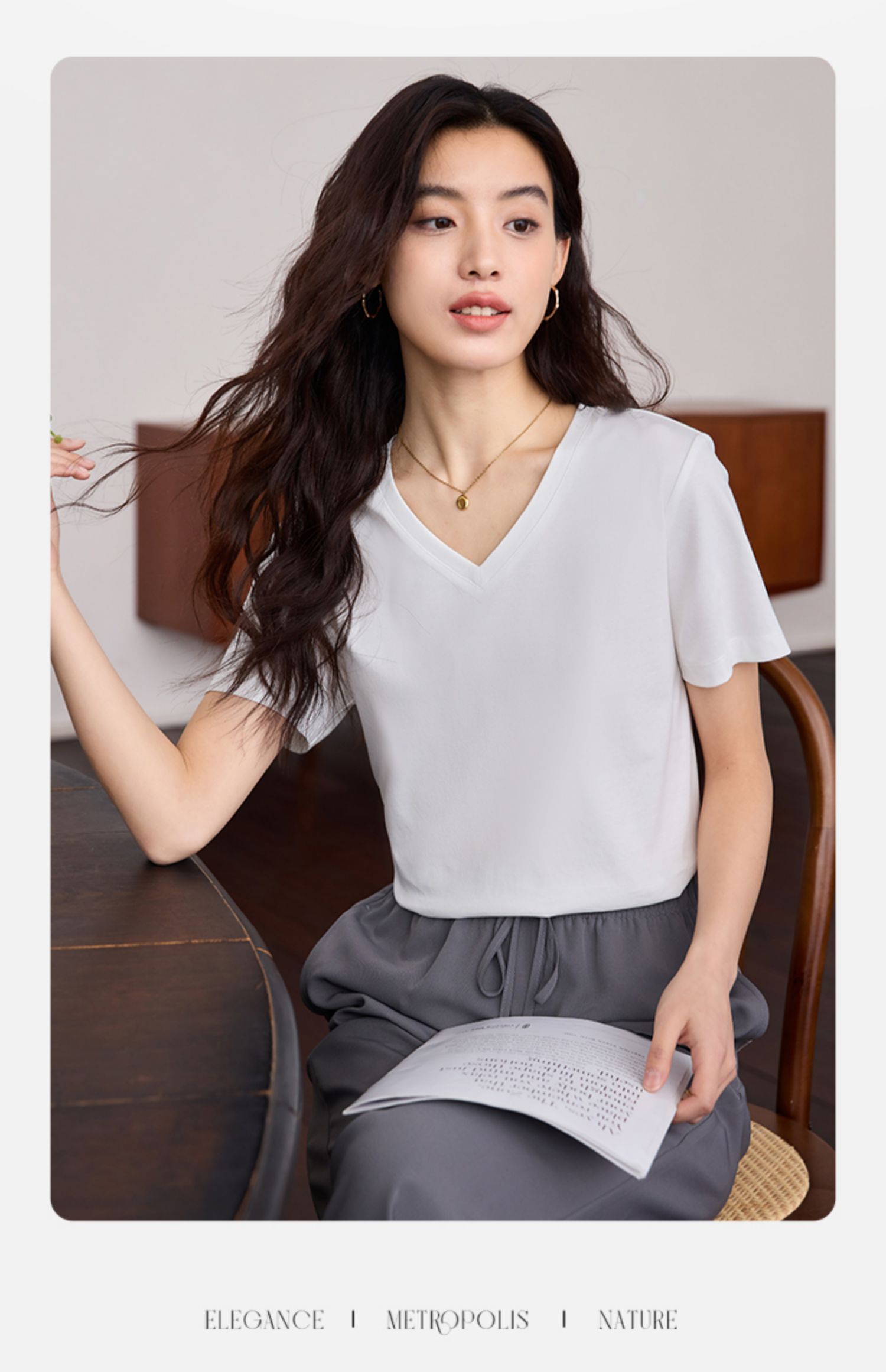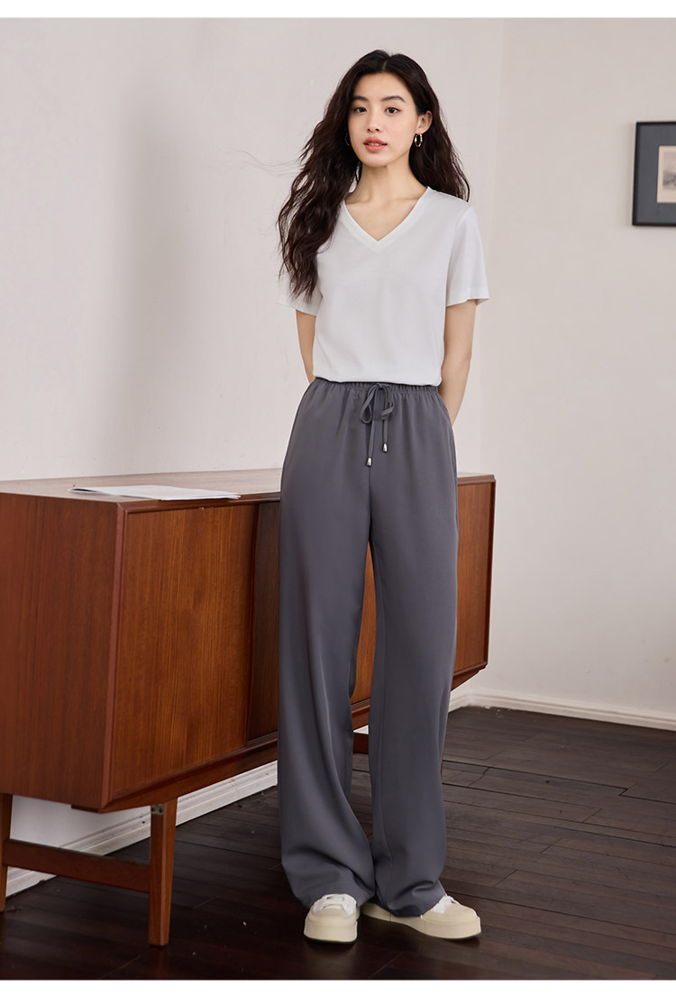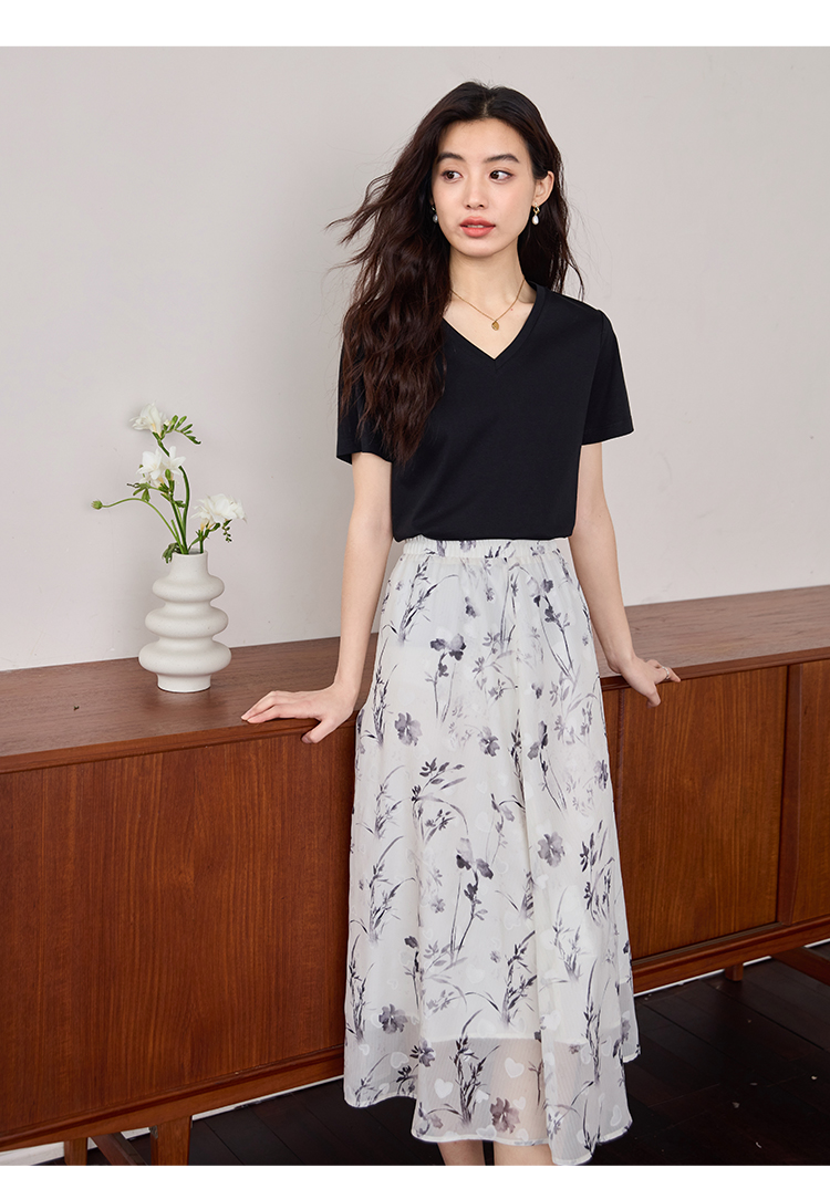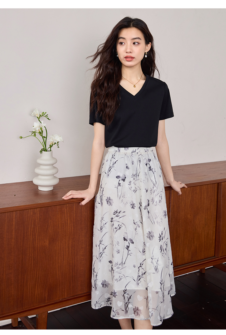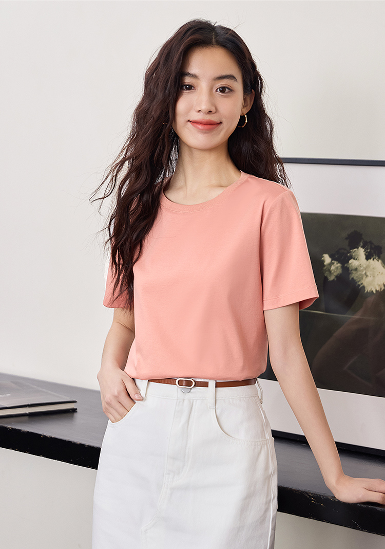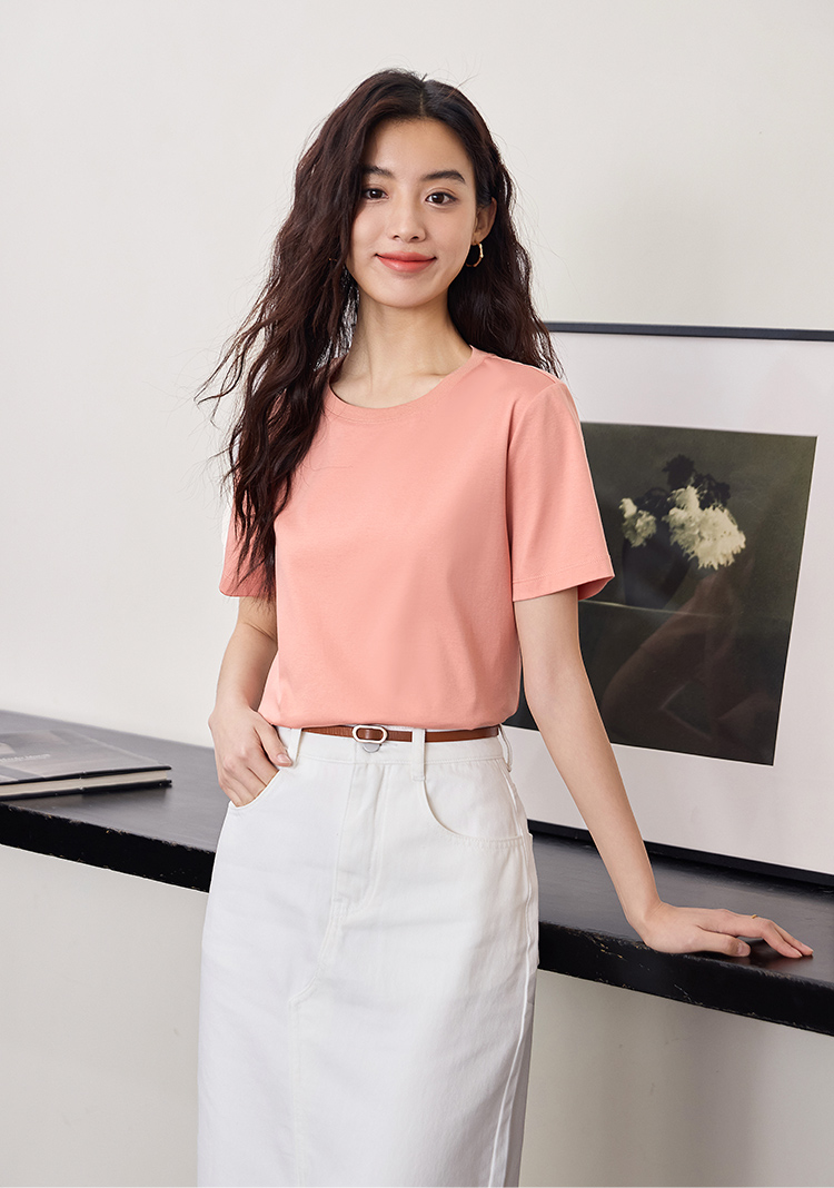 【专属特价】熙世界重磅70s丝光棉t恤短袖2025夏天新款简约纯色V领体恤上衣
