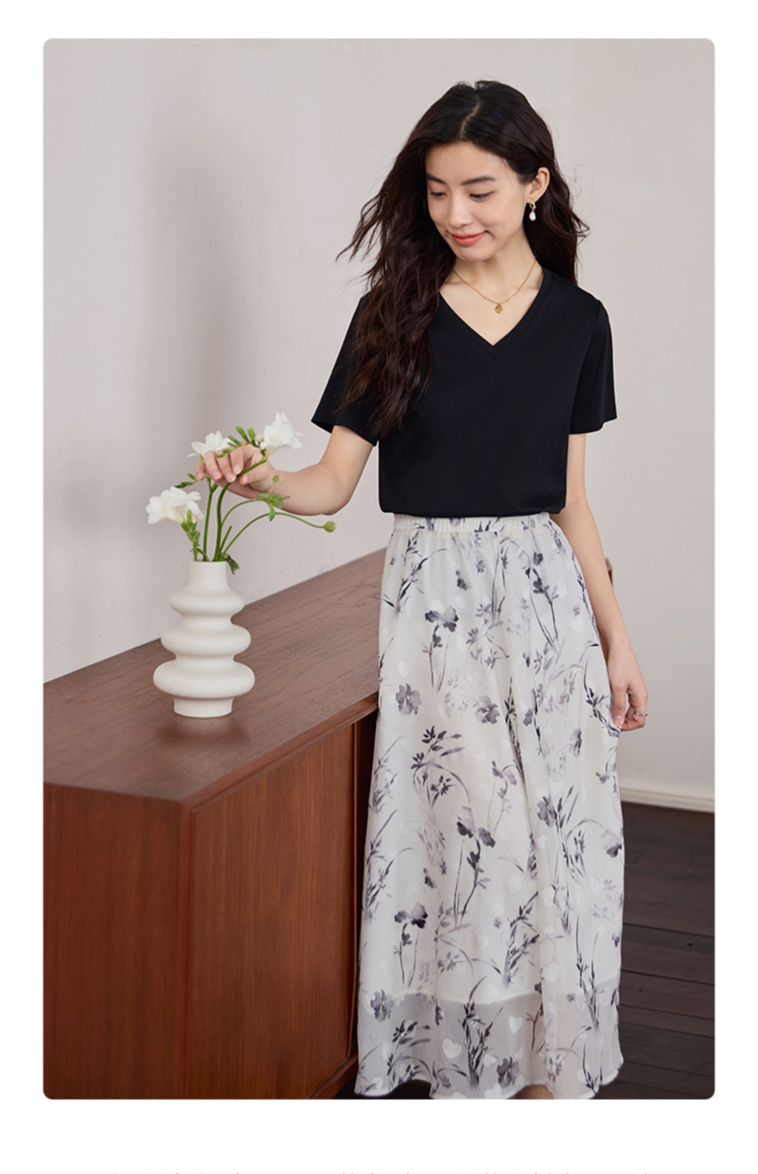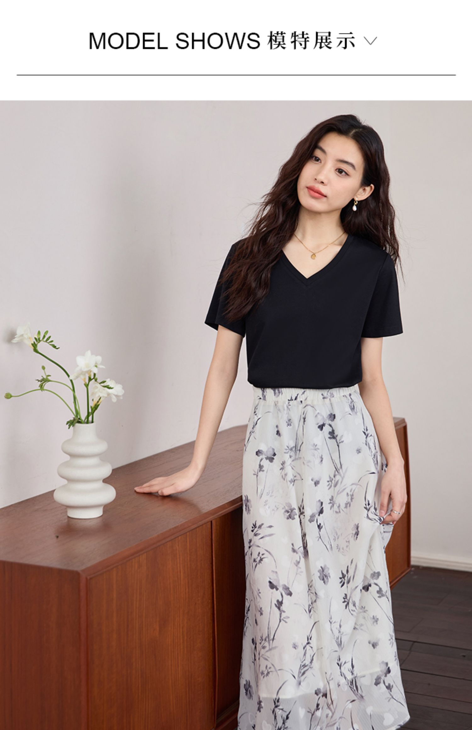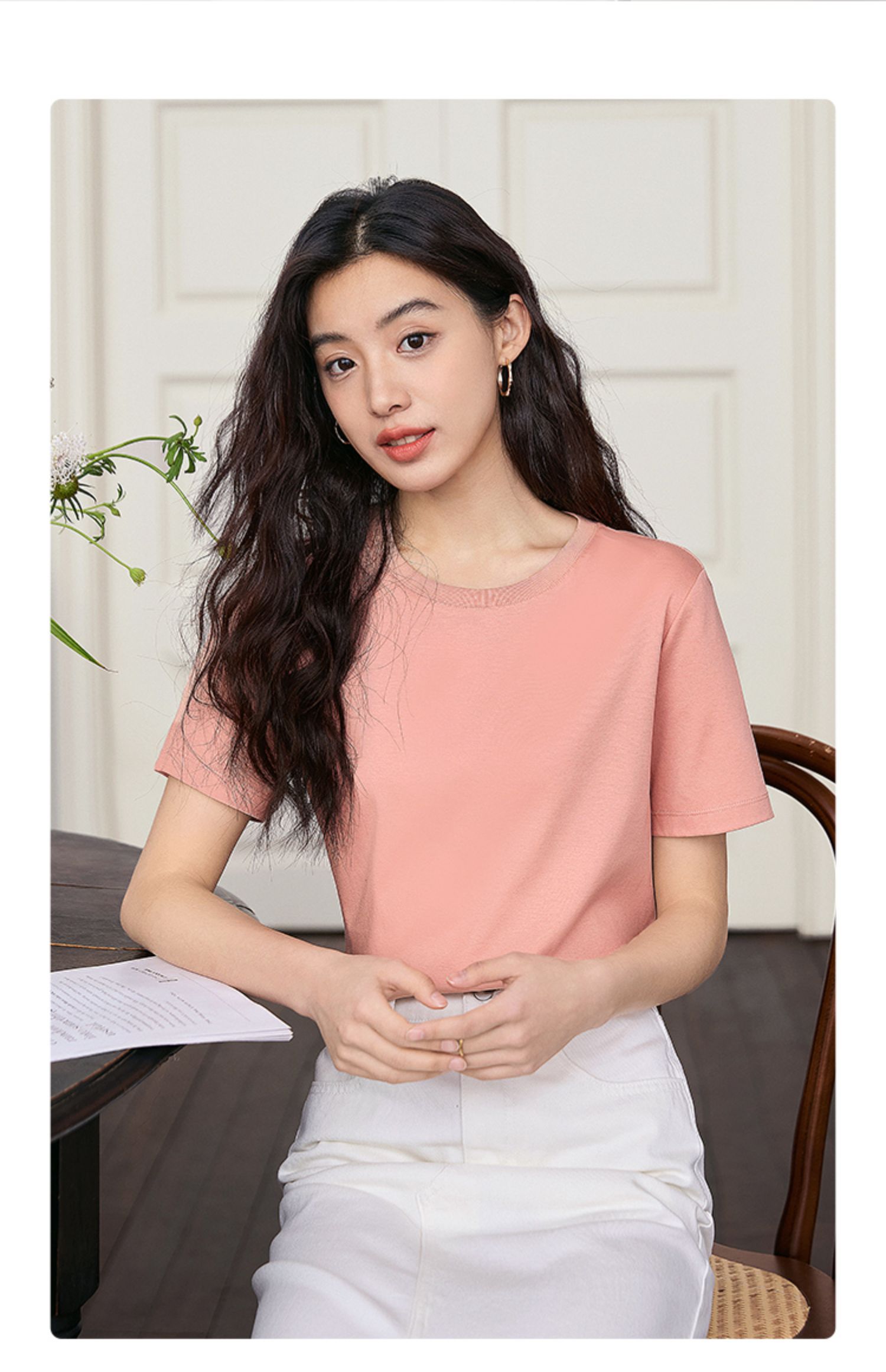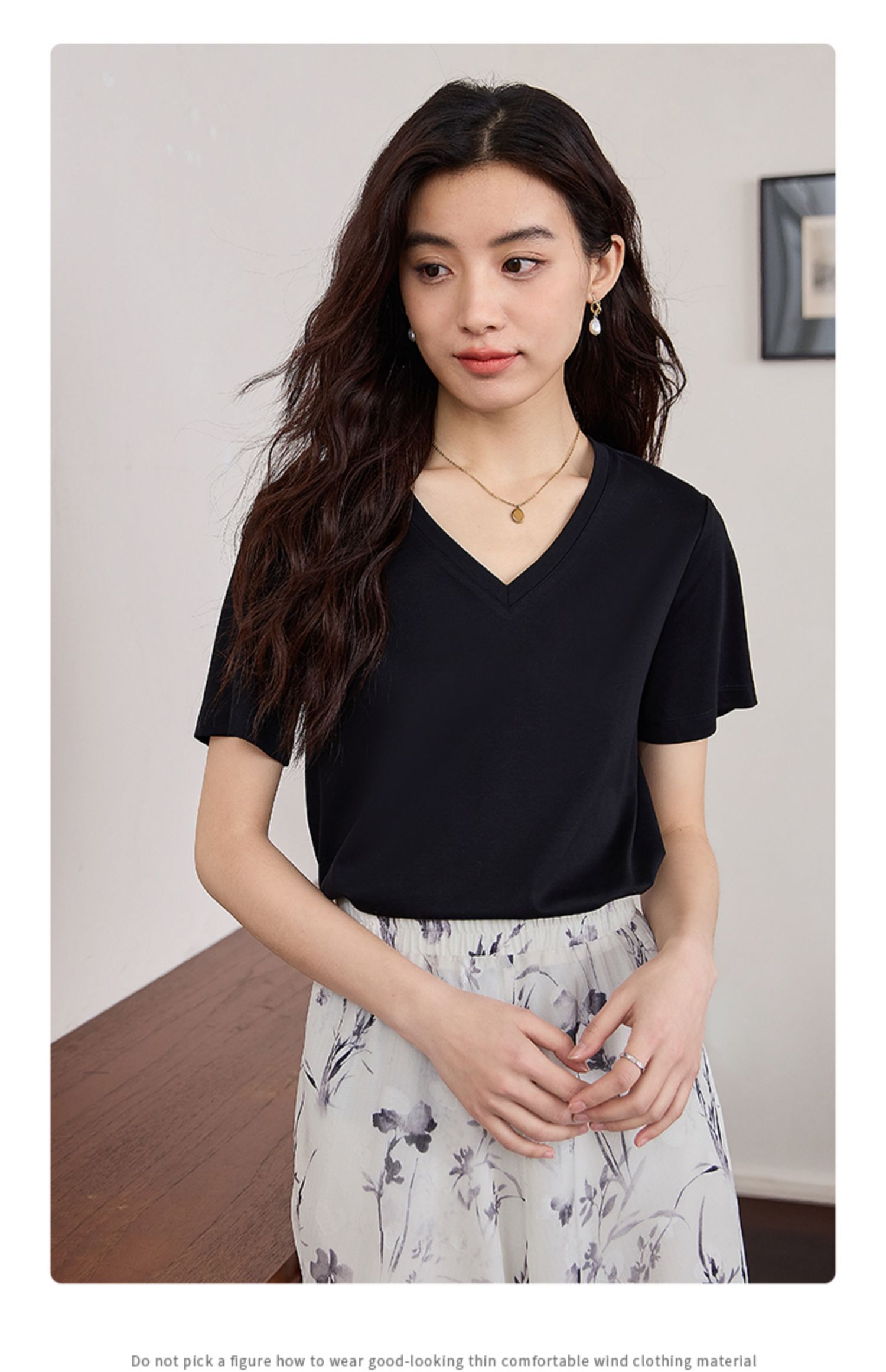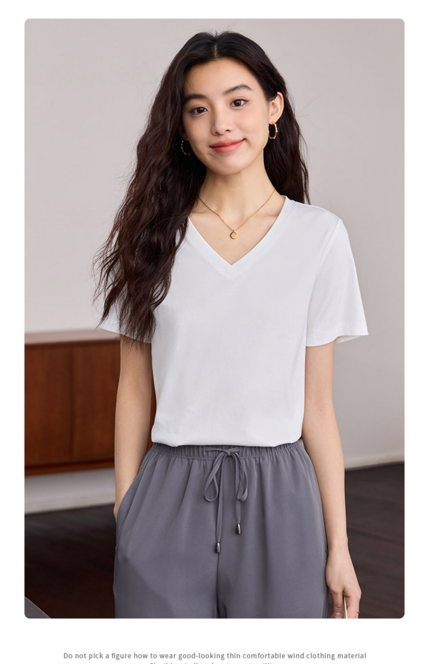 【专属特价】熙世界重磅70s丝光棉t恤短袖2025夏天新款简约纯色V领体恤上衣