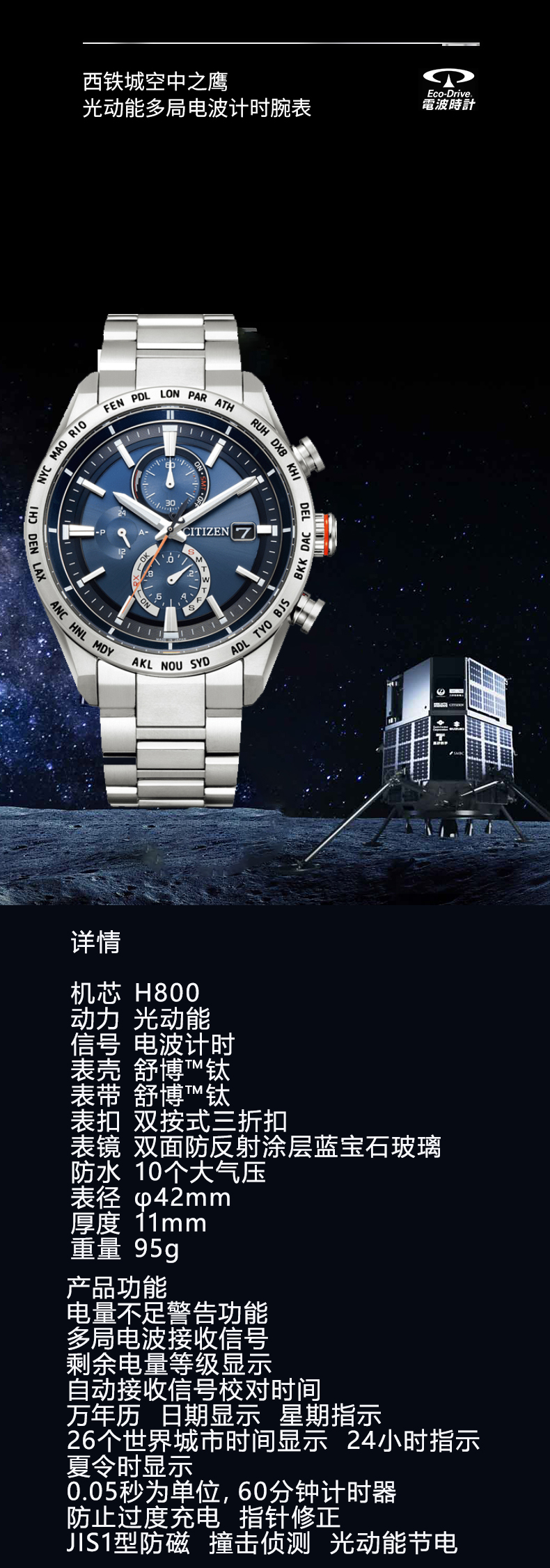 西铁城日本官方正品空中之鹰系列新品舒博钛光动能电波男表AT8181-63L