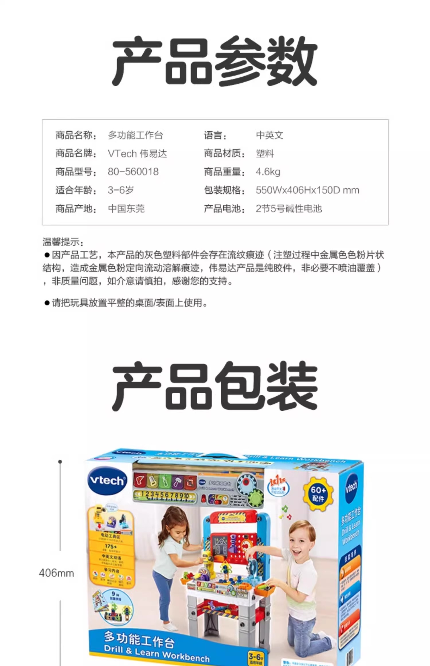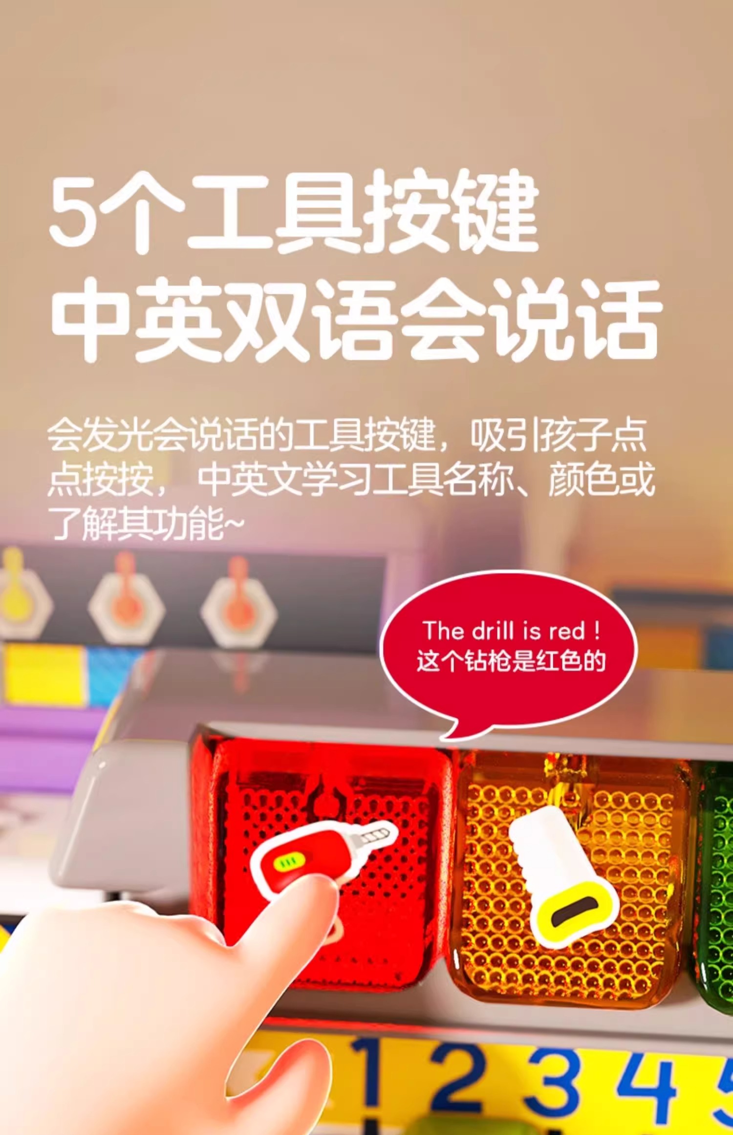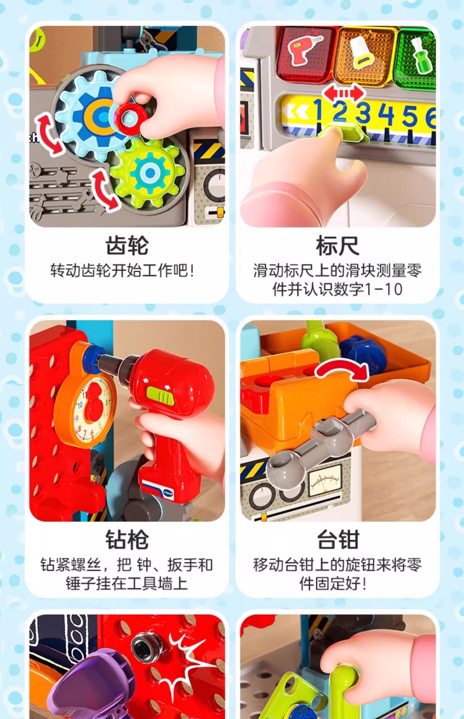 伟易达仿真多功能工作台工具箱维修拧螺丝双语创意拼搭电动玩具