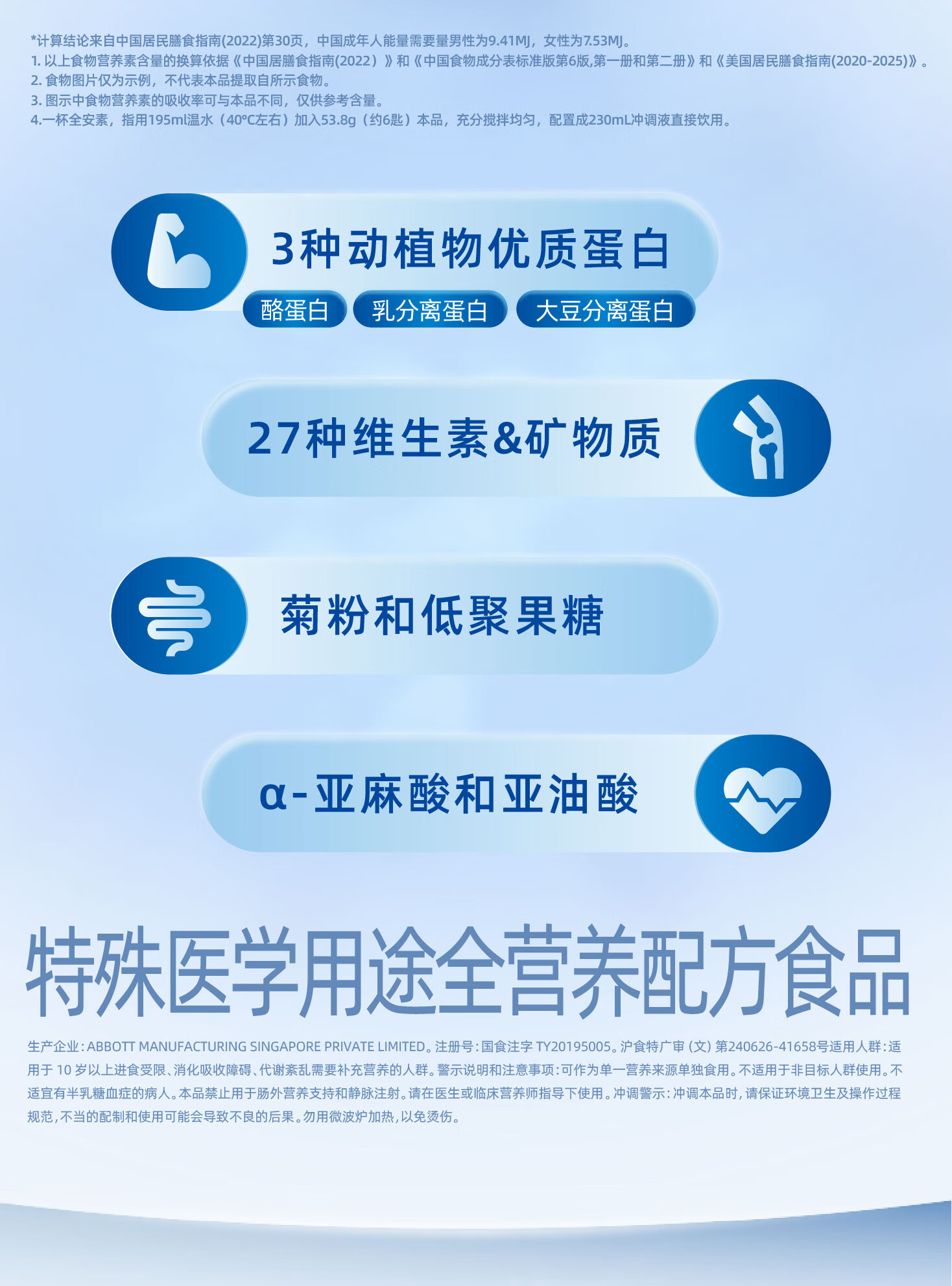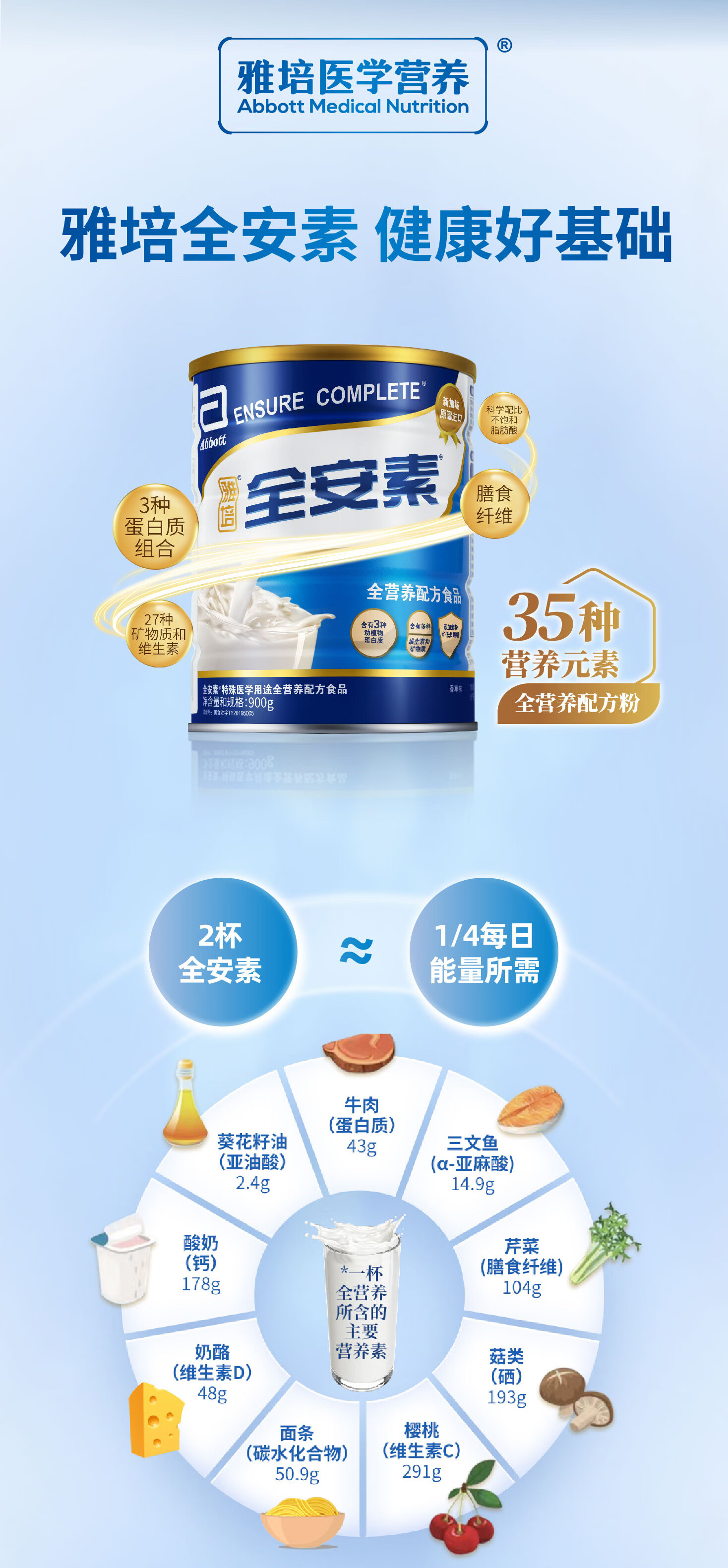 雅培全安素全营养配方粉 补充蛋白质营养 中老年营养品送礼礼盒 900g*2香草味