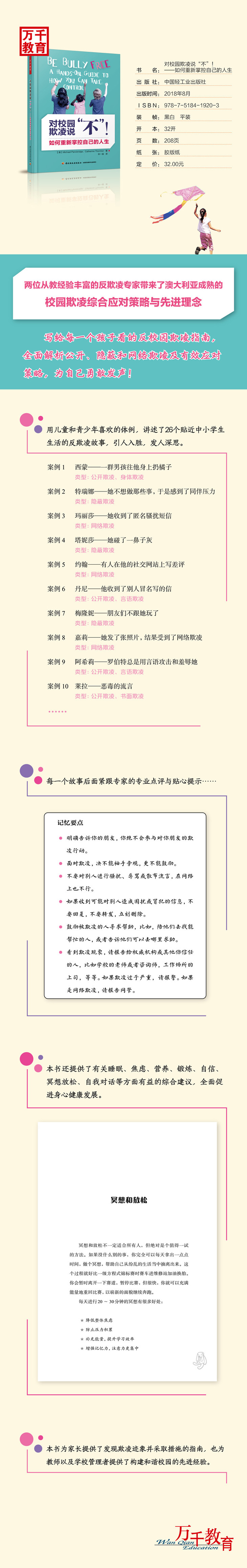 本书带来的是澳大利亚等国更成熟的应对校园欺凌的综合策略与先进理念,将给读到它每一位儿童与青少年、教师以及家长带来深刻而丰富的启示!