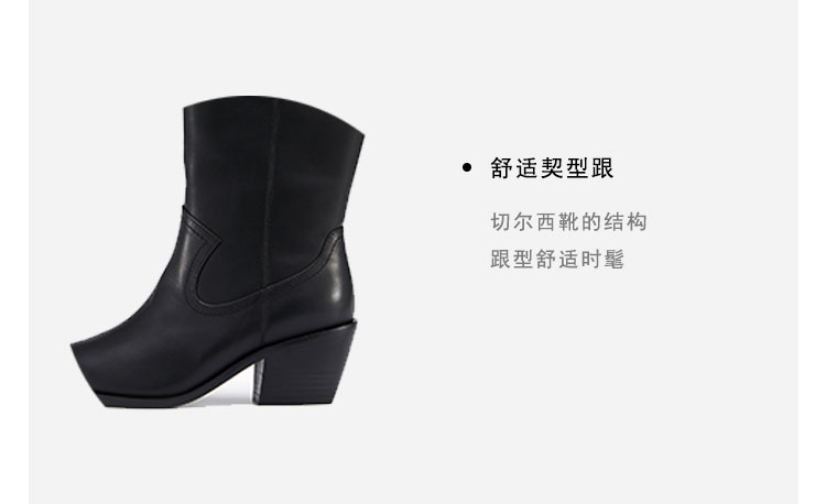 精选秒杀--弹力羊皮粗跟短靴