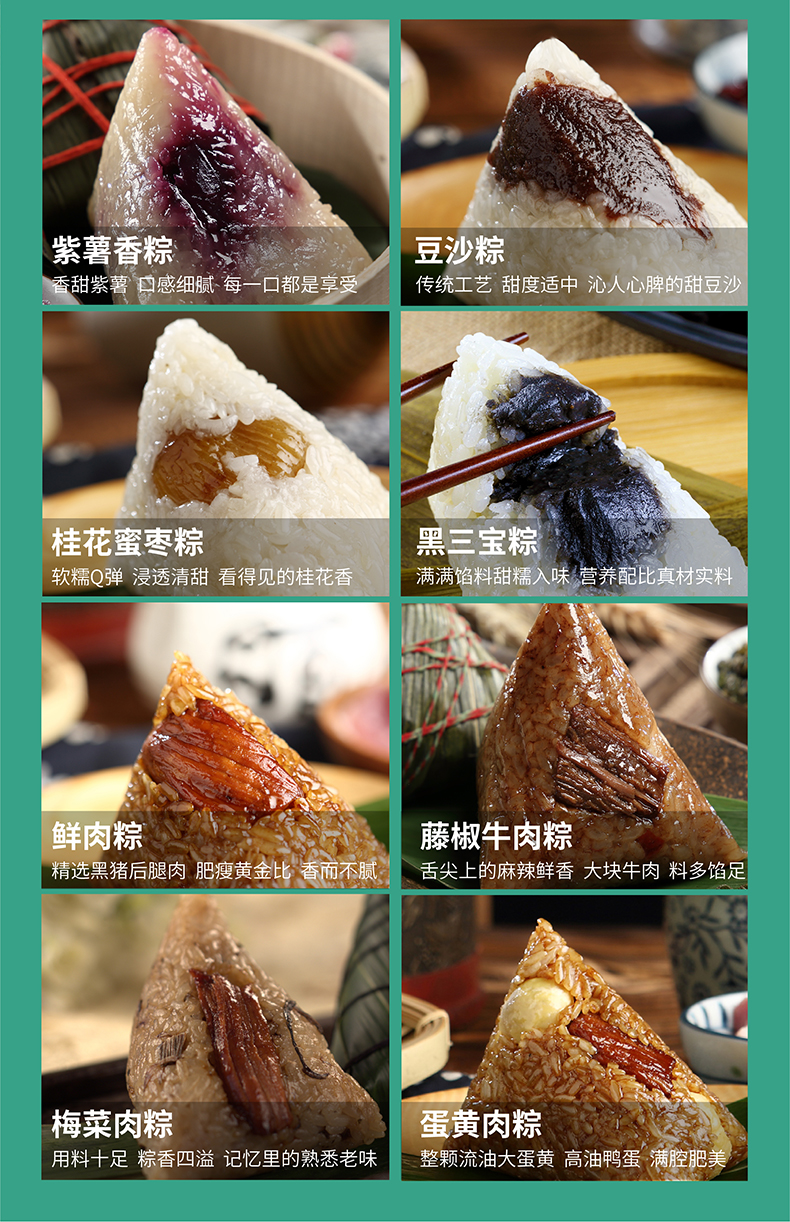 【乐在其粽 下单返券】俗画说南北粽师优享版紫薯藤椒牛肉梅干菜肉粽环保再生纸浆800g