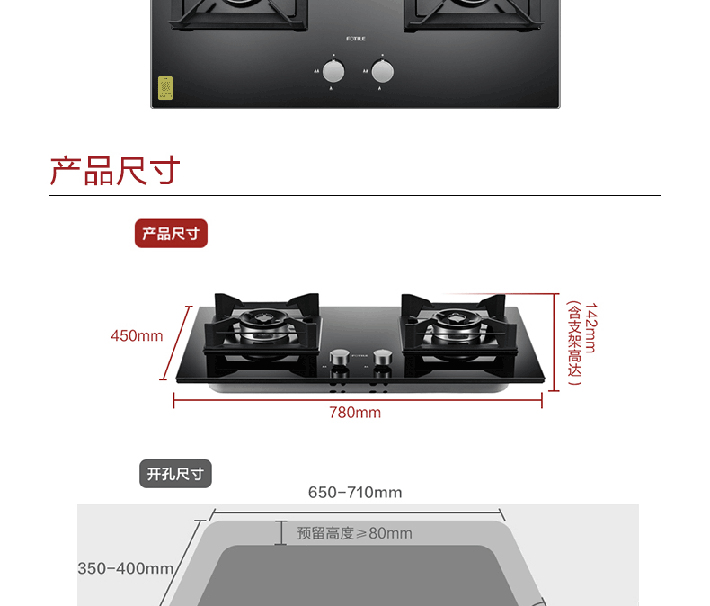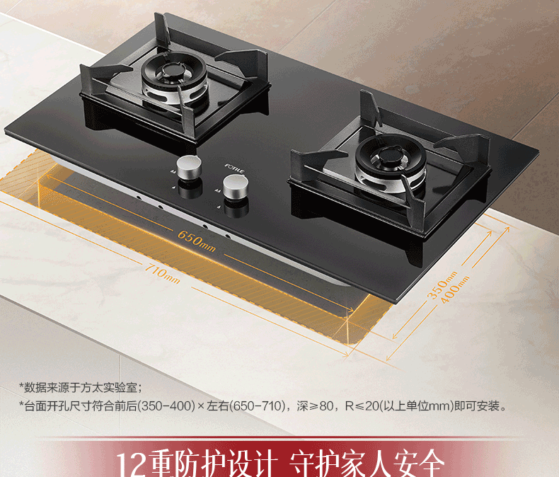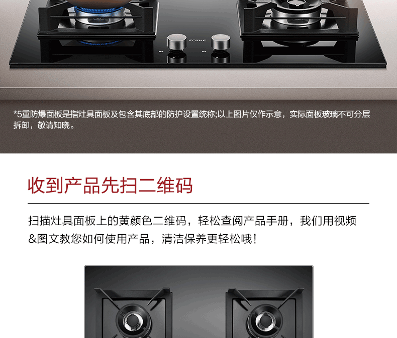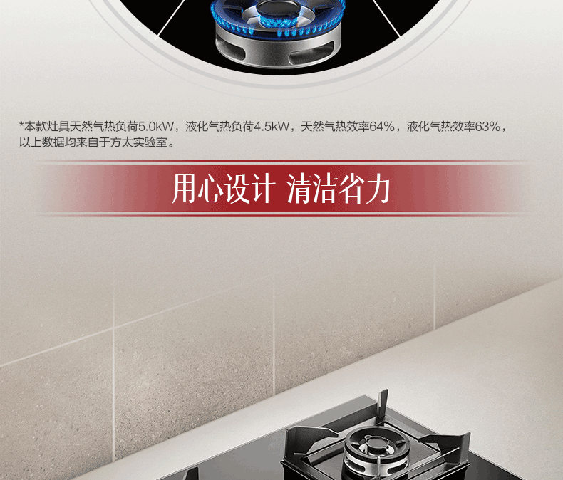 方太燃气灶嵌入式家用灶具 高效直喷5.0kW* 64%热效率一级能效02-HA7B新品 天然气